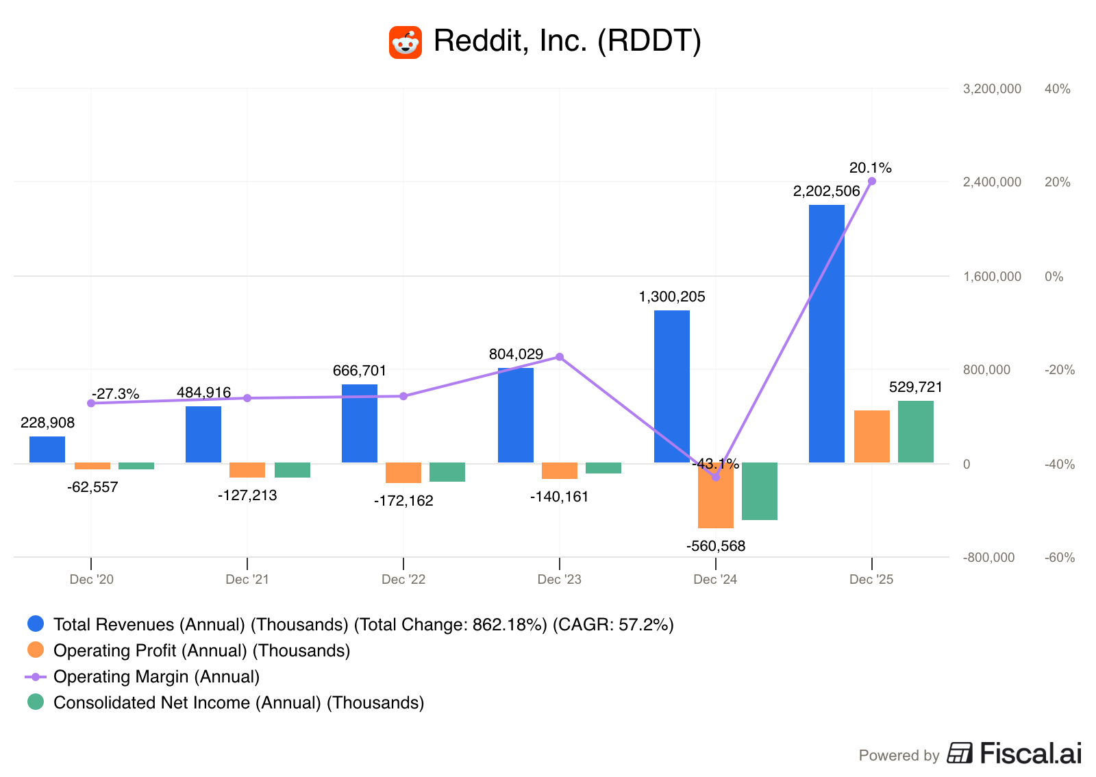 Reddit’s financials in early 2026 show a business that is scaling profitably.
