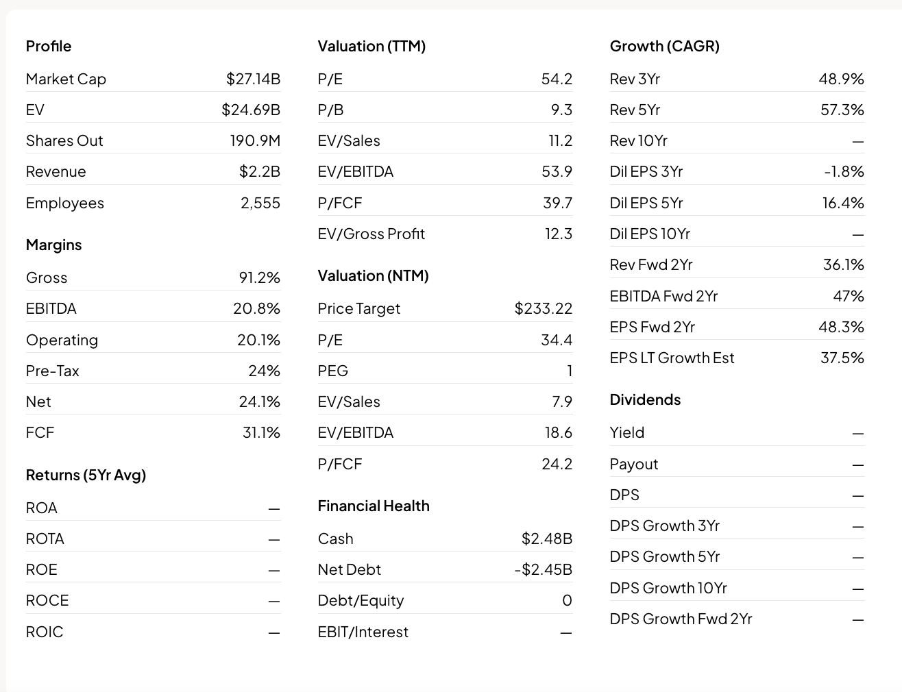 At the time of writing, RDDT has a Market Cap of $27.14B with a Net Cash position of >$2.45B. Debt to EBITDA is -5.4.