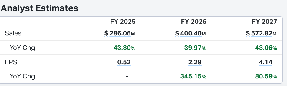 HROW trades at Trades at 6.5x EV/s and 4.4x NTM EV/S. Trades at 29.6x NTM earnings estimates. Although, in 2027 EPS is expected to reach $4.14 (see below) which puts it at 8x projected 2027 earnings.