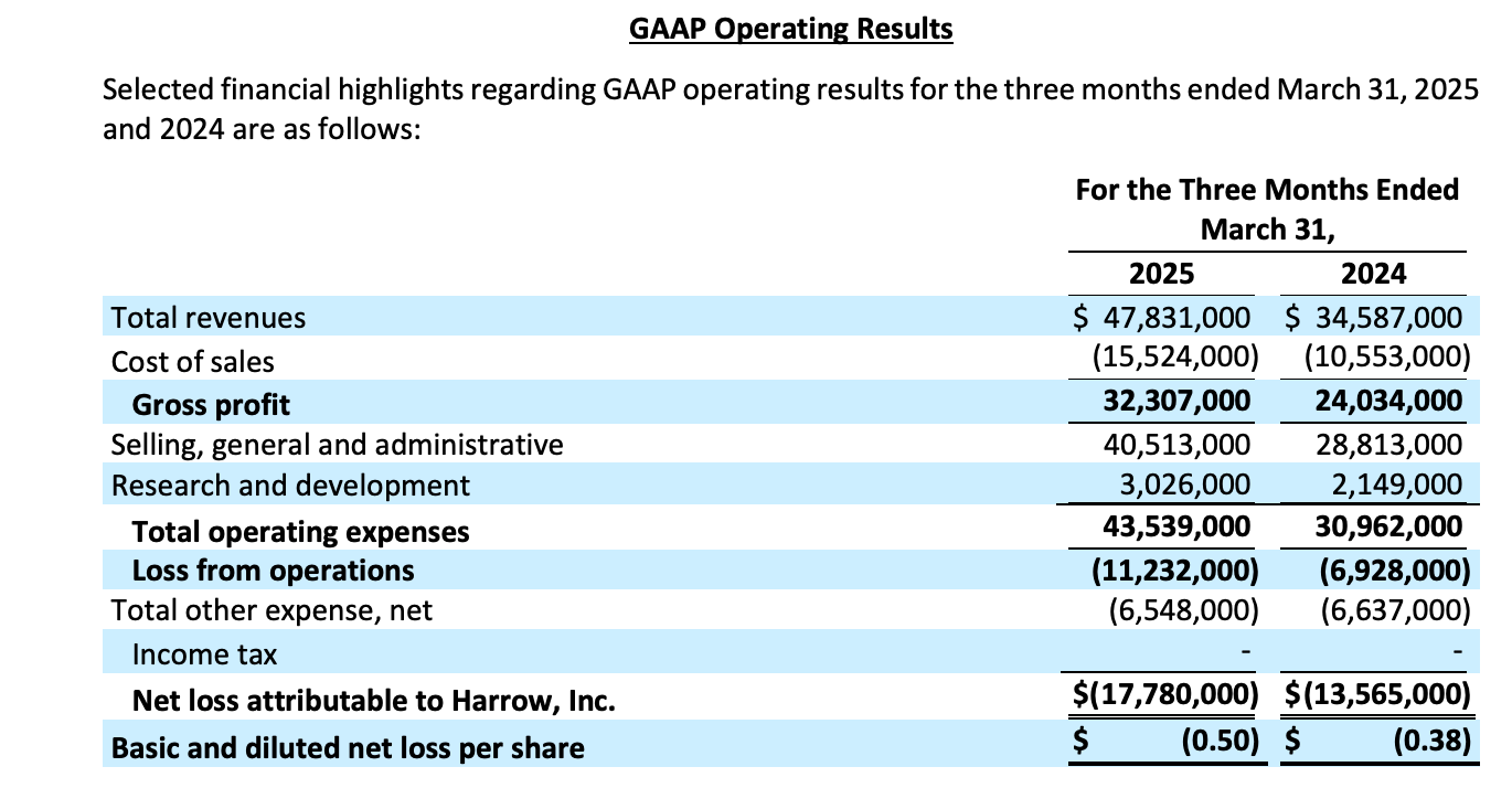 Note that Harrow’s business follows a predictable seasonal pattern. The first quarter is typically the weakest due to factors like insurance deductible resets and distributor stocking. Performance then generally improves throughout the year, with the fourth quarter being the strongest, driven by year-end patient and distributor purchasing.
