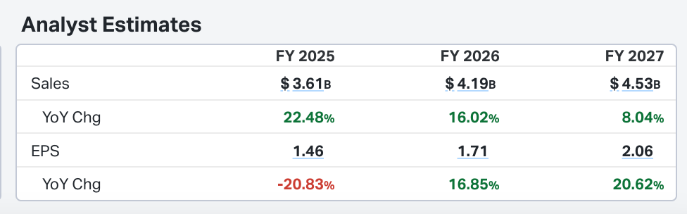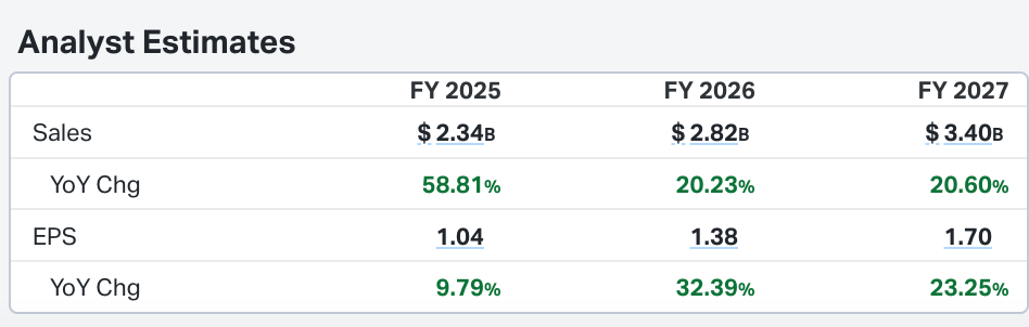 Hims trades at 51x forward earnings and analyst estimates are as follows: