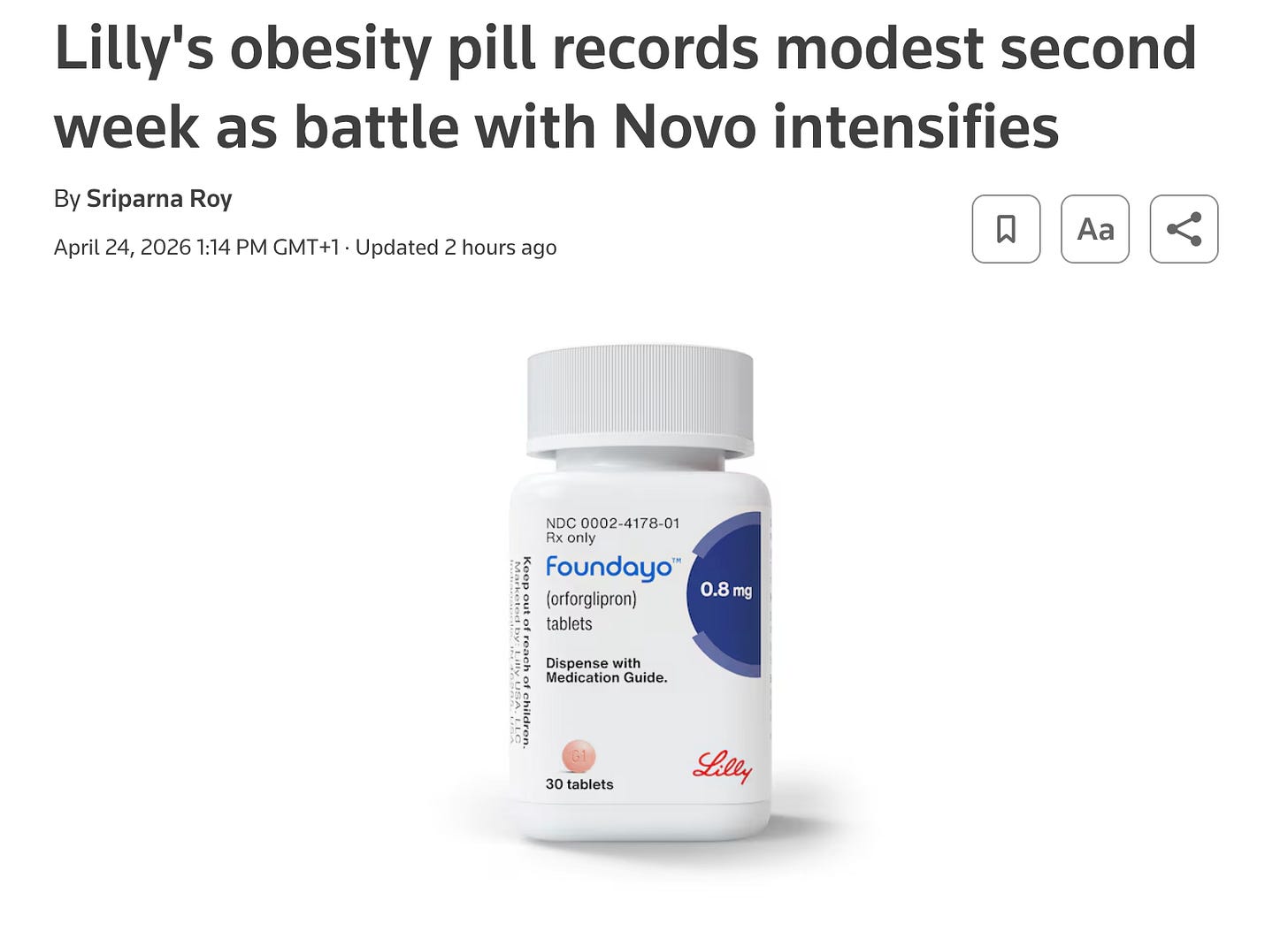 Foundayo: Weekly prescriptions grew from 1,390 at launch to 3,707 by April 17. *2nd week)