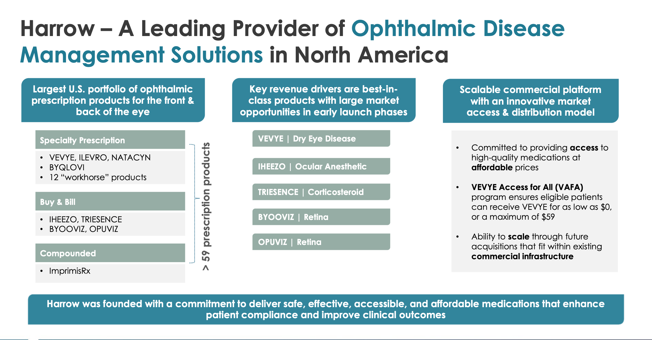 Biosimilar Portfolio Acquisition: Securing the exclusive U.S. commercial rights to the Samsung Bioepis ophthalmology biosimilar portfolio represents a significant opportunity for Harrow to expand its product offerings and market reach.