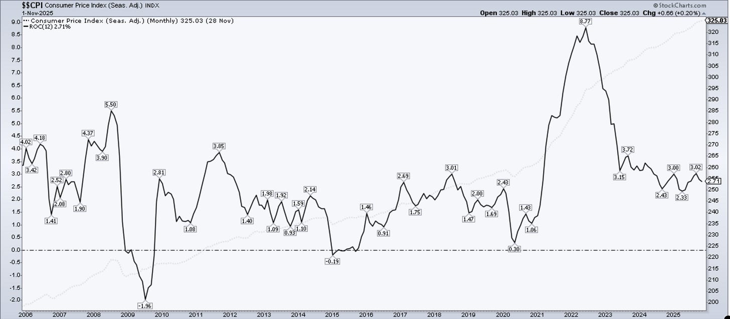 The November 2025 CPI data (released December 18, 2025) came in significantly cooler than economist expectations, largely due to disruptions from the federal government shutdown that affected data collection.
