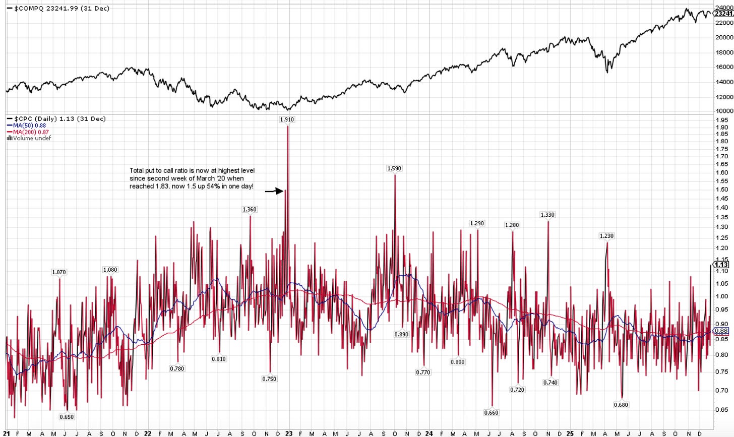 CPC (Put to Call Ratio) is 1.13 and increased by >36% on the prior trading day. >1 can indicate Fear and >1.5 can be Extreme.