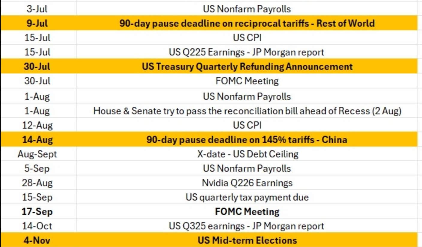 Equity Markets have enjoyed another strong month with the Dow, S&P 500 and Nasdaq Composite putting up +3.56%, +4.37% and +5.73% MTD performances respectively. Back-drop wise markets continued to rally on the back of Trump’s Tariff delays. There was the Israel-Iran war which was fleeting.