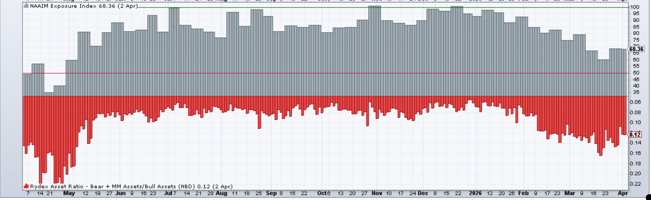 NAAIM Exposure Index is 68.36. Note it did get into the low 30’s in April 2025 (!)