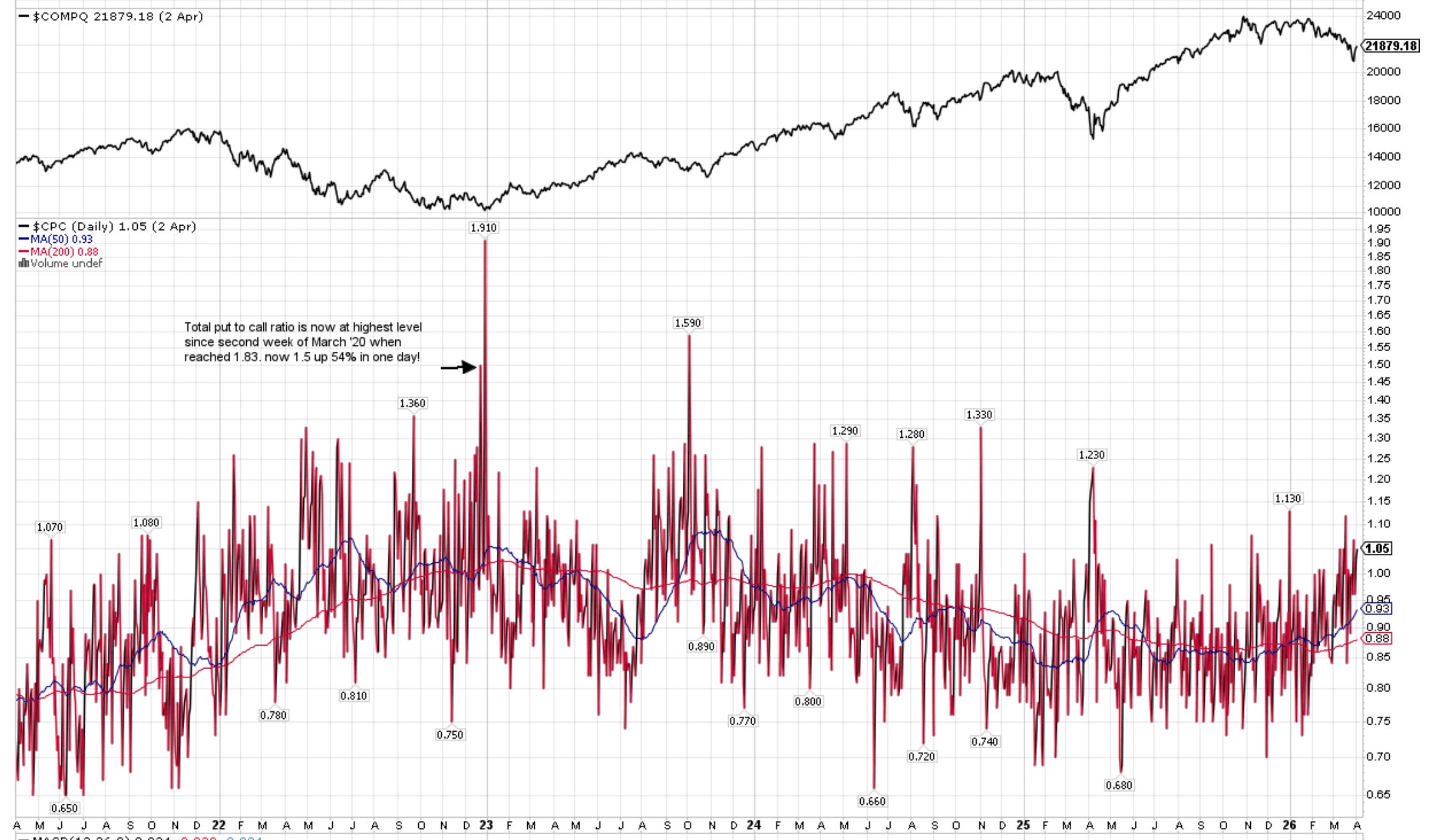 CPC (Put to Call Ratio) is 1.05. Note >1 can indicate Fear and >1.5 can be Extreme.