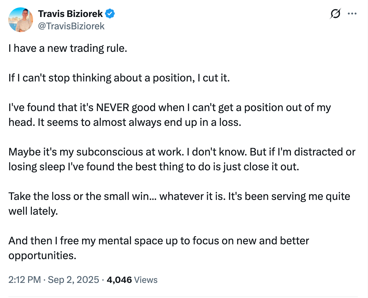 “If I can’t stop thinking about a position, I cut it” Travis Biziorek