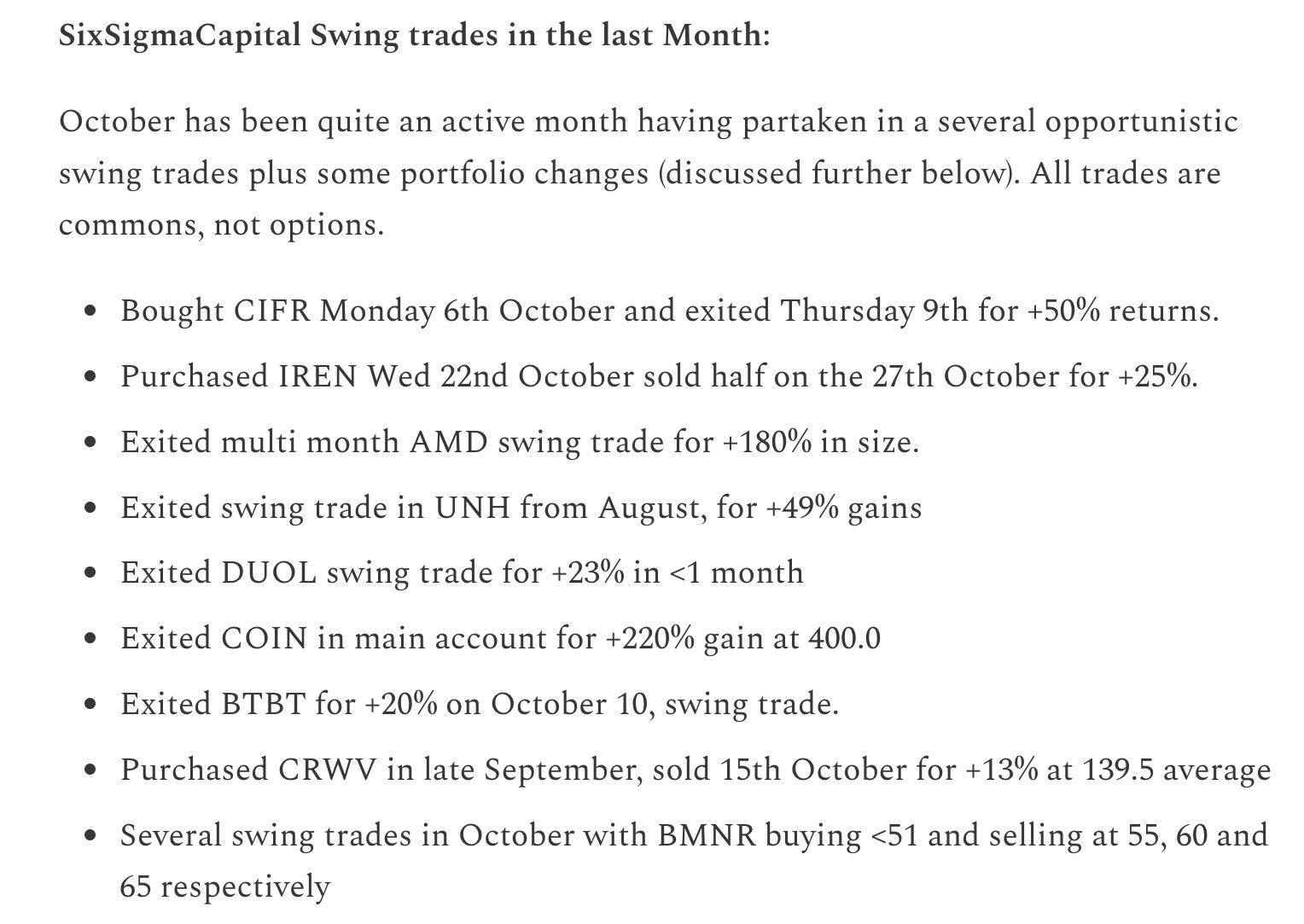 For reference, swing trades in October are shown below also: