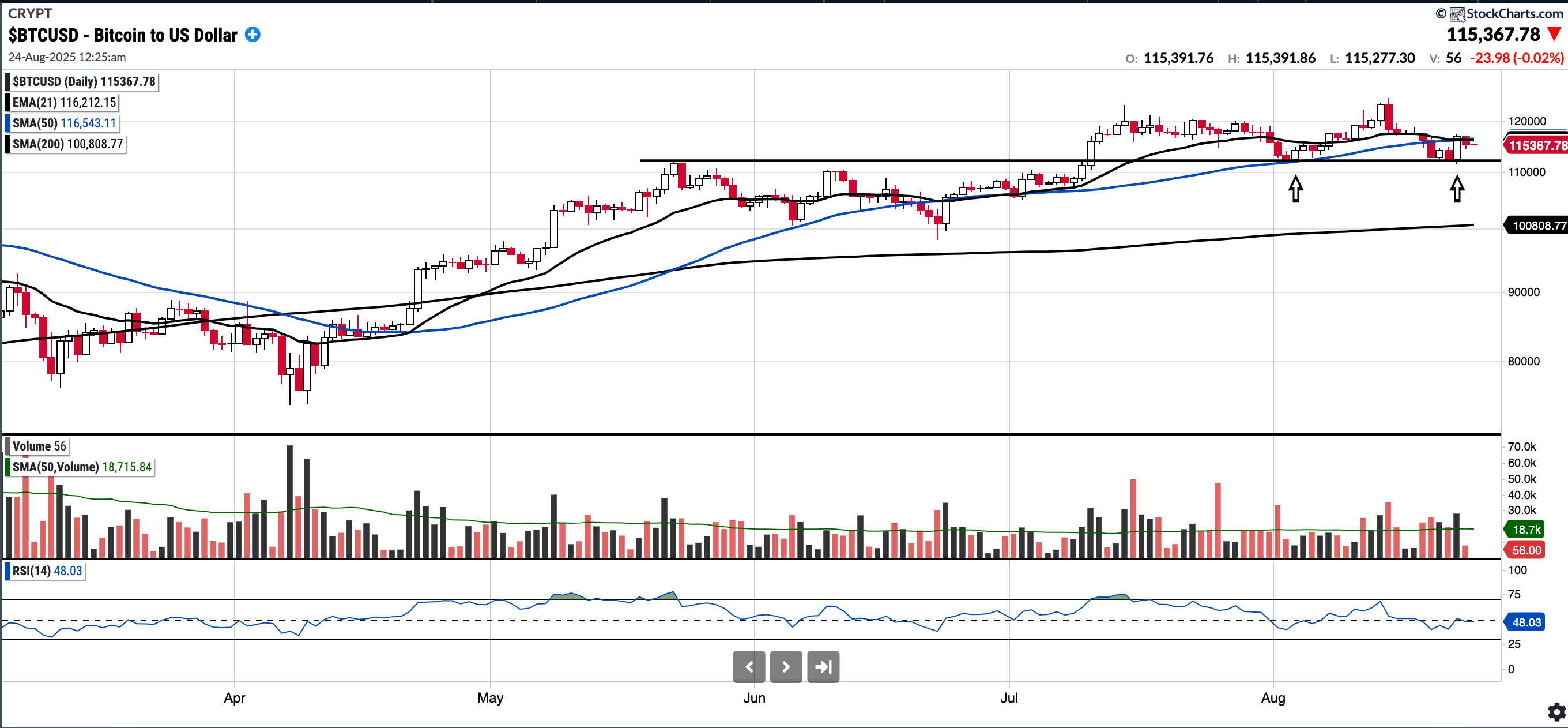Currently $115,367.78. 1% below50 SMA and 14.44% above 200SMA.