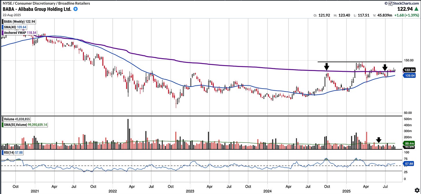 BABA has had a decent run this year but found resistance in the mid 140 level where I reduced some of the position BABA trim March 17th 2025