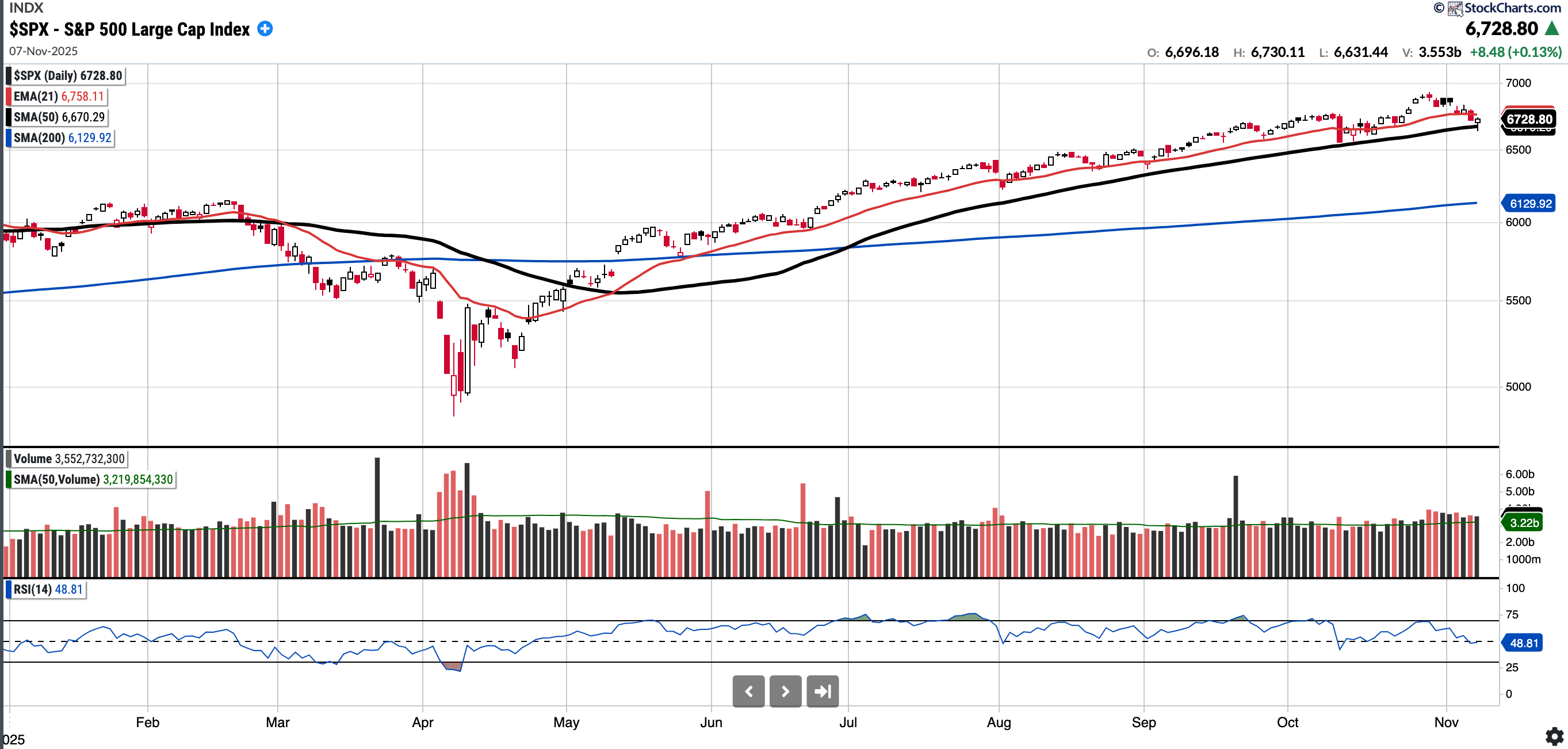 Currently trades at 6728.8.2, 0.88% above a rising 50SMA and 9.77% above 200SMA.