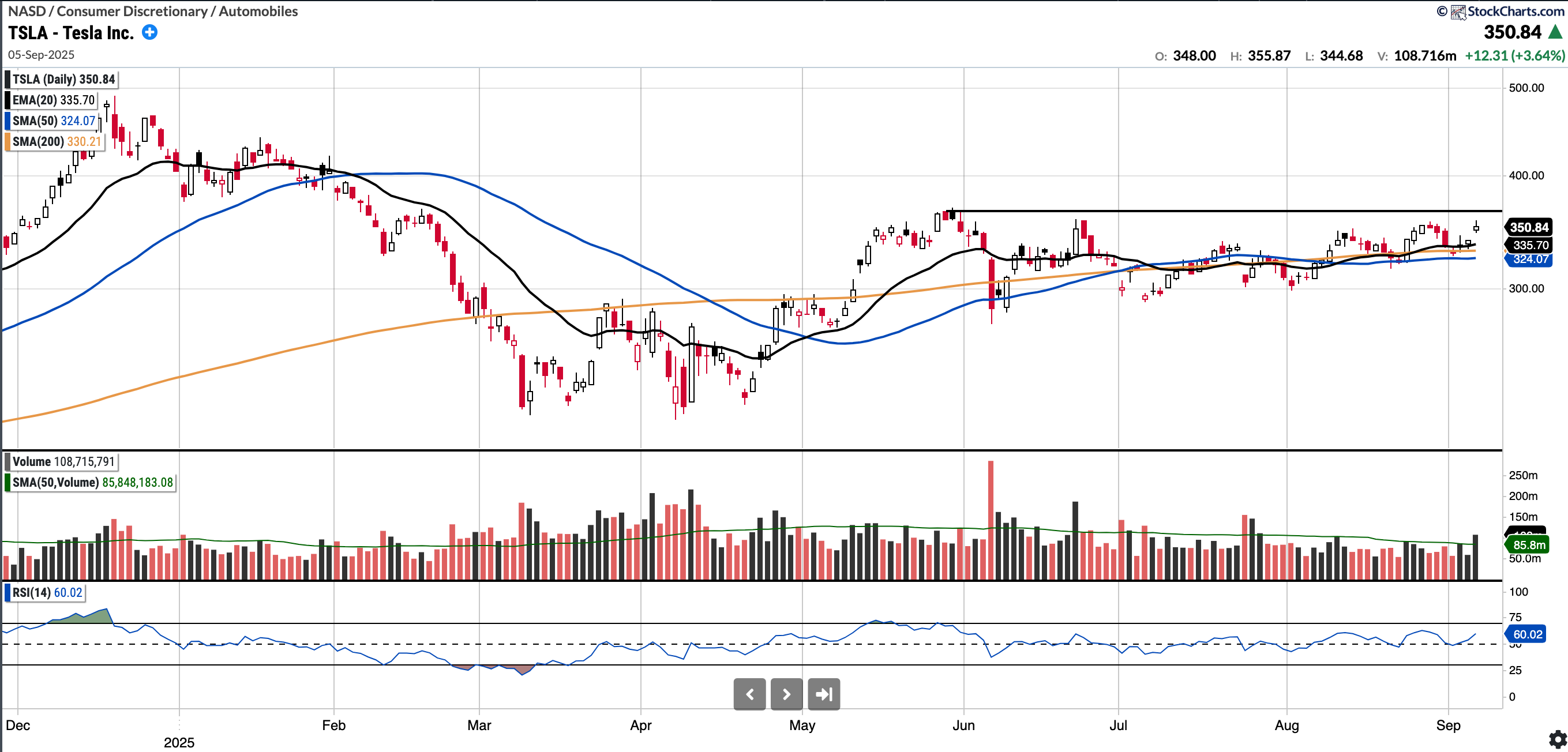 Currently trades at $350.84 RSI 60.02 and 6.25% above 200SMA.