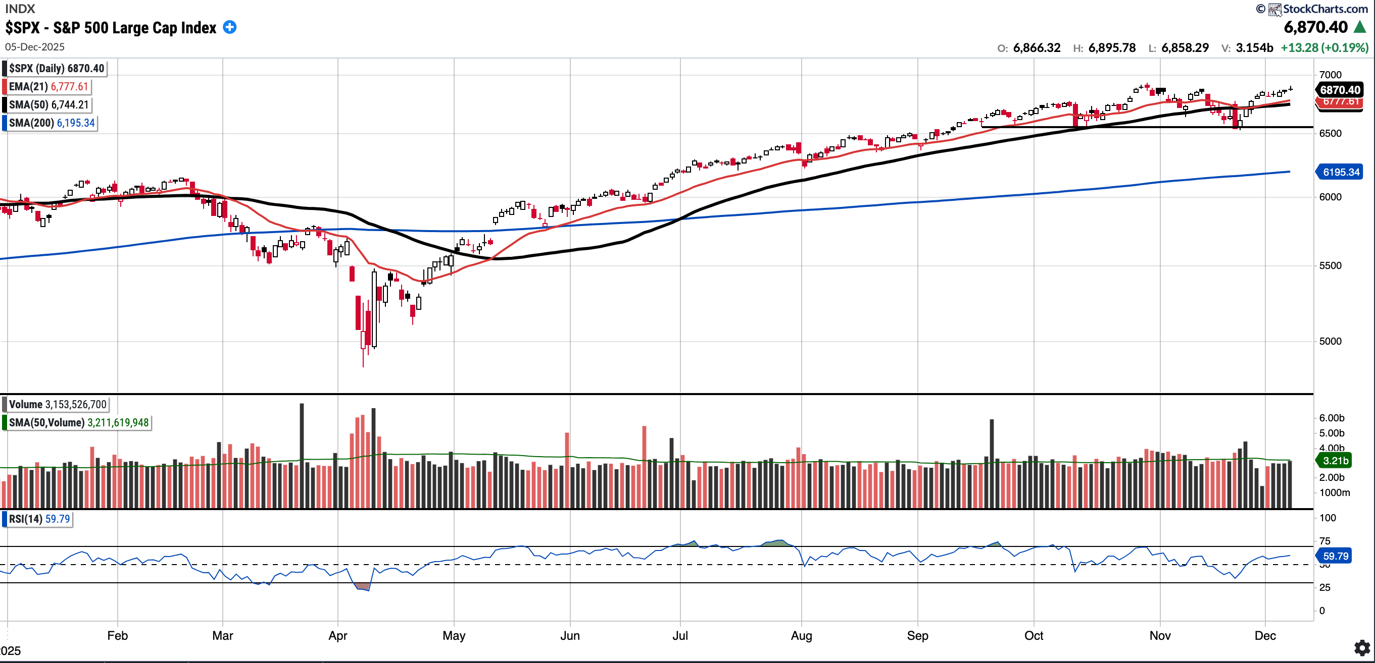 Currently trades at 6870.40, 1.87% above a rising 50SMA and 10.9% above 200SMA.