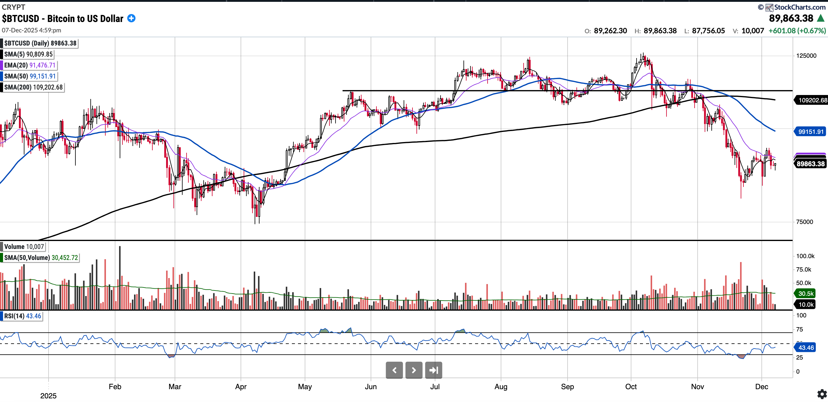 Currently trades at $89,863.38, 9.34% below the 50SMA and 17.7% below the 200SMA.