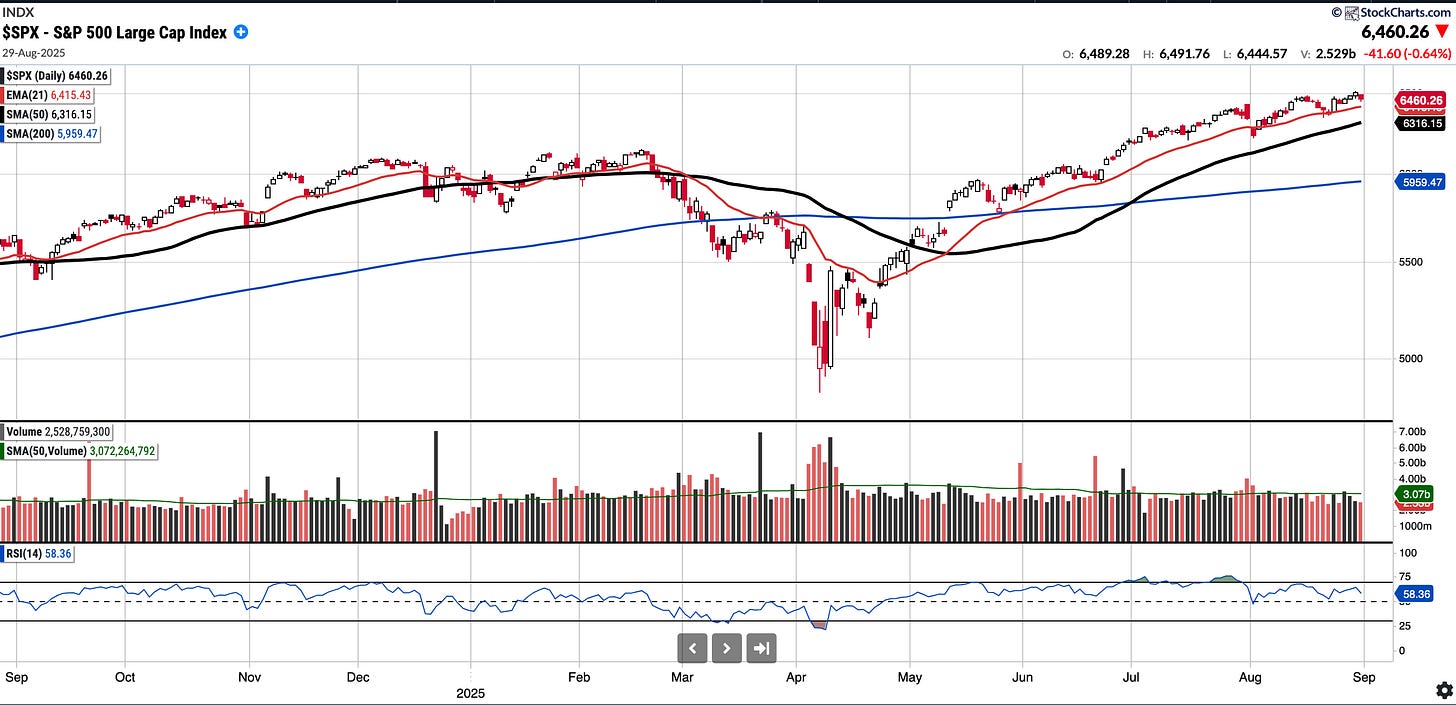 Sits currently at 6501.86.91, RSI 58.36, 2.28% above a rising 50SMA.