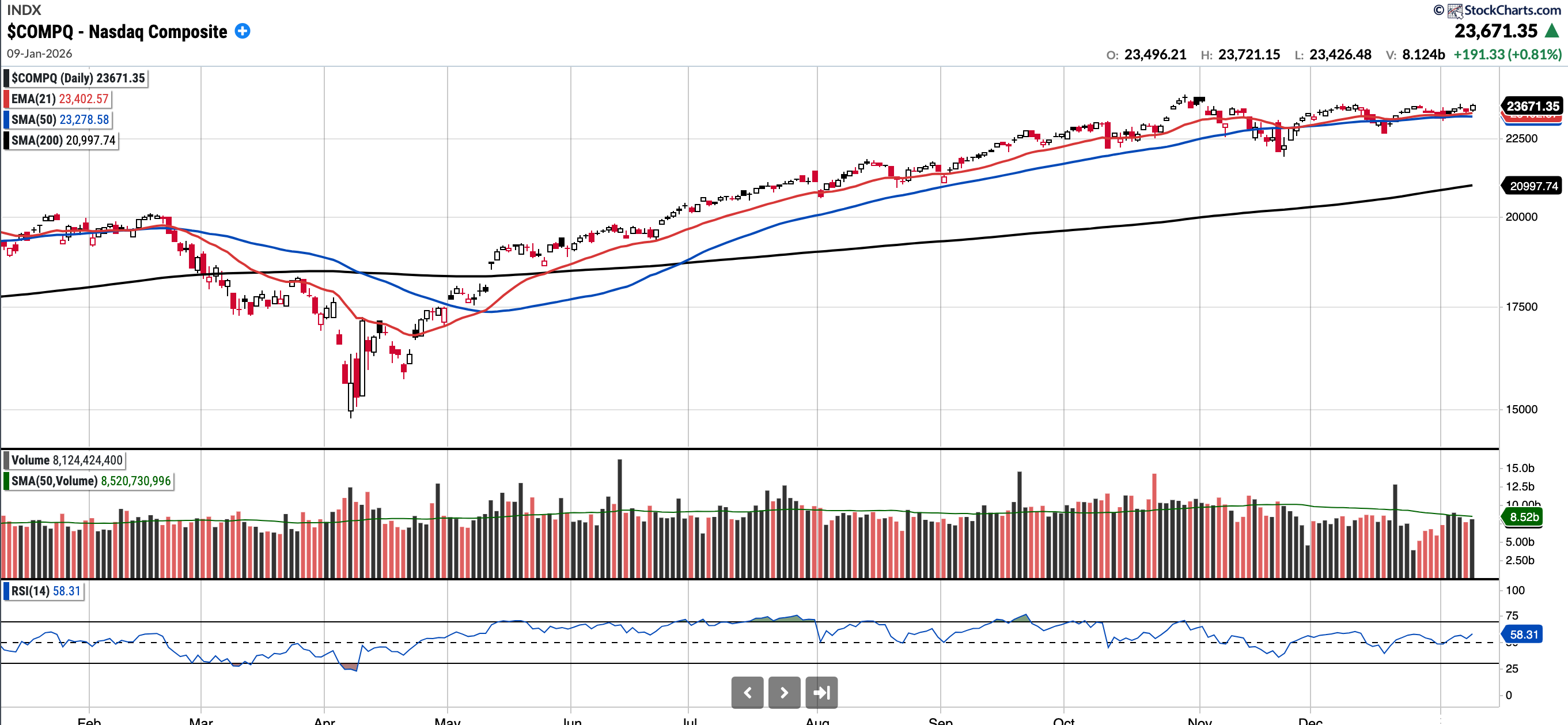 Currently trades at 23,671.35, 1.69% above a rising 50SMA and 12.73% above the 200SMA.