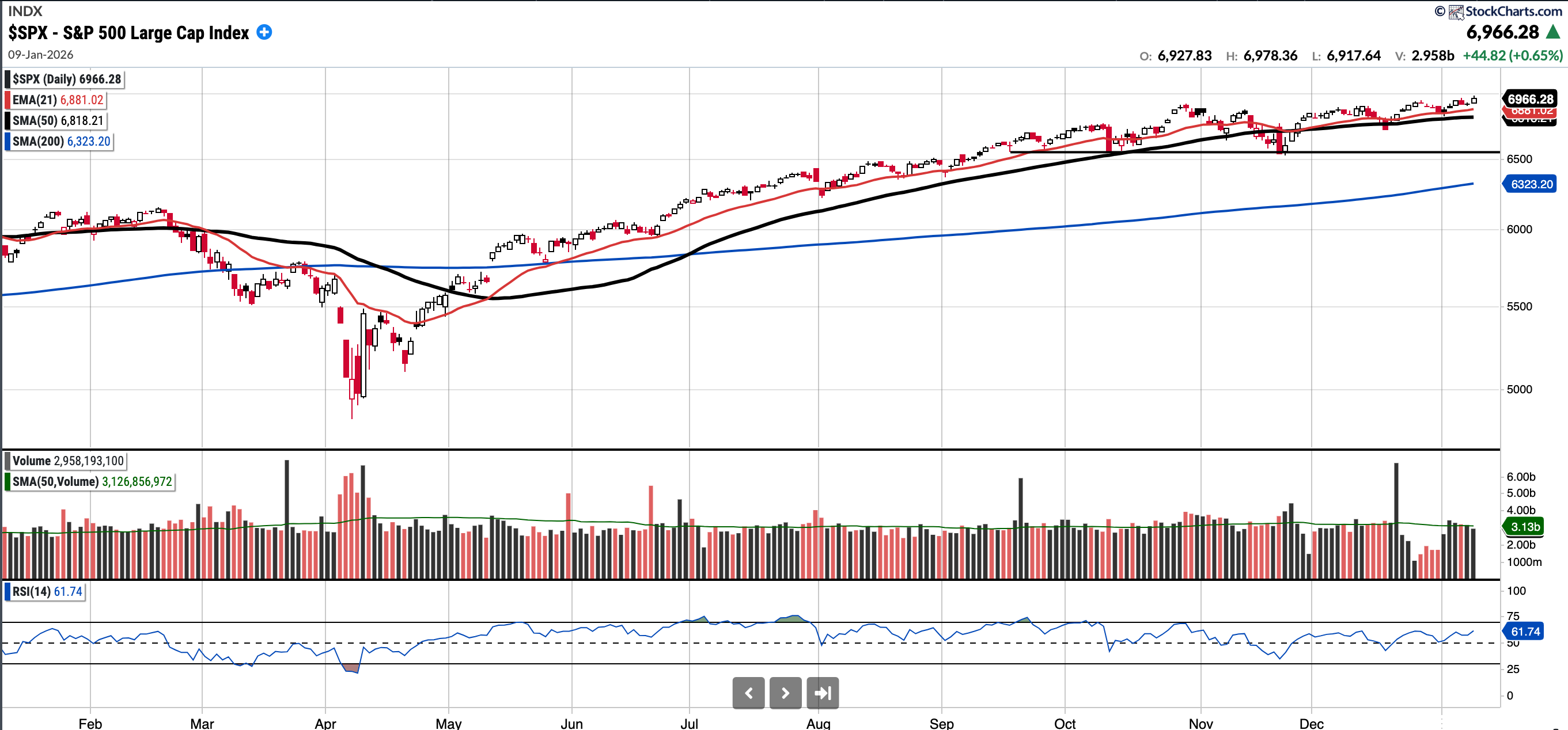 Currently trades at 6966.28, 2.17% above a rising 50SMA and 10.17% above the 200SMA.