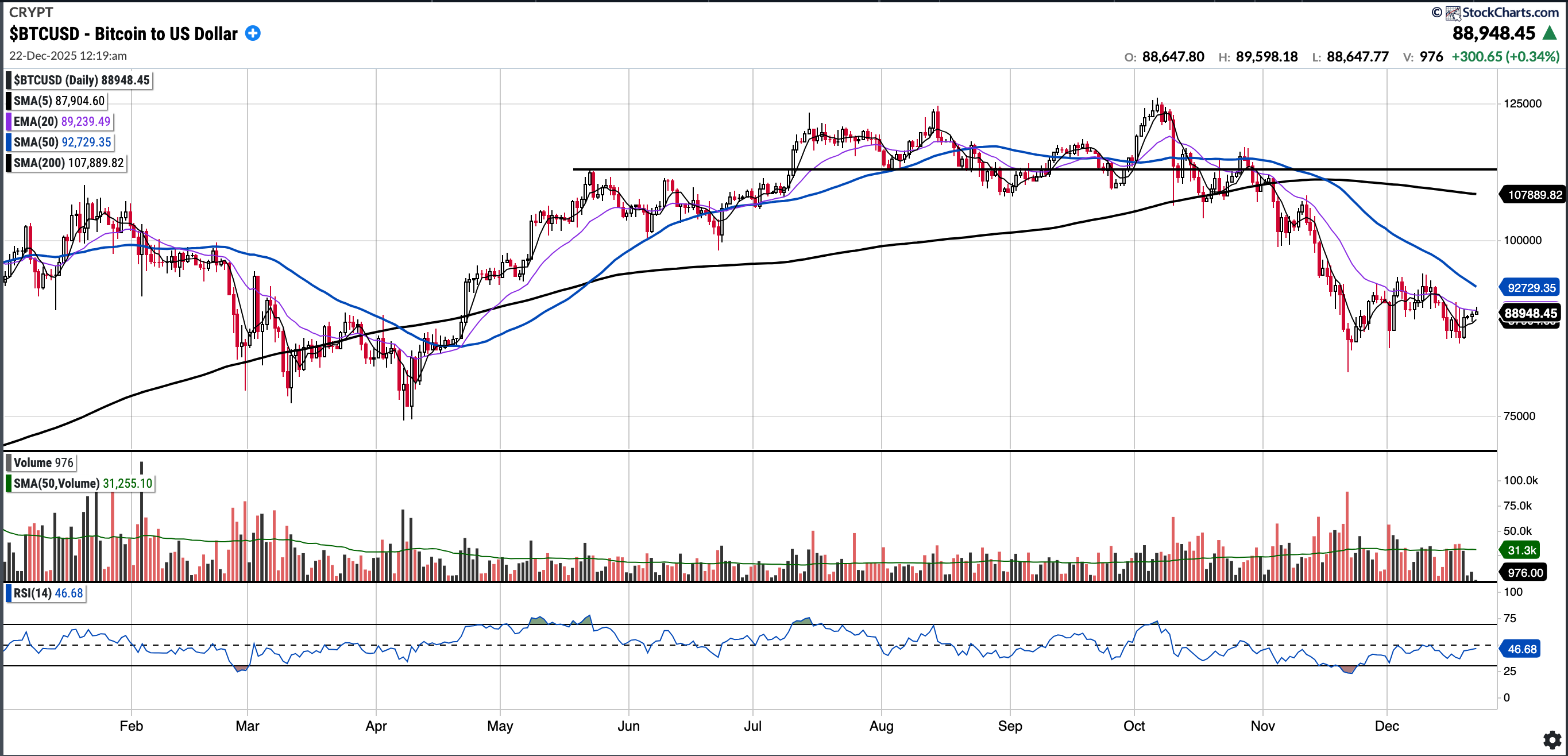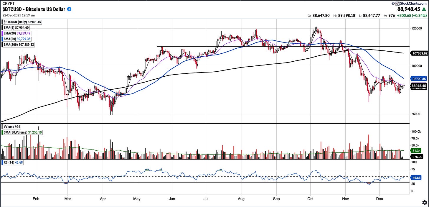 Currently trades at $88,948.45, 4.08% below the 50SMA and 17.56% below the 200SMA.