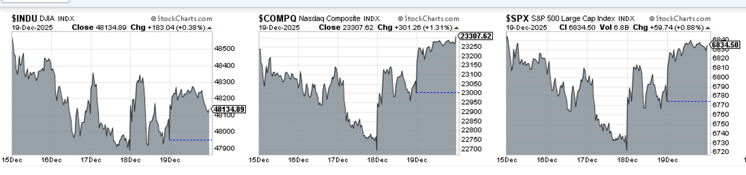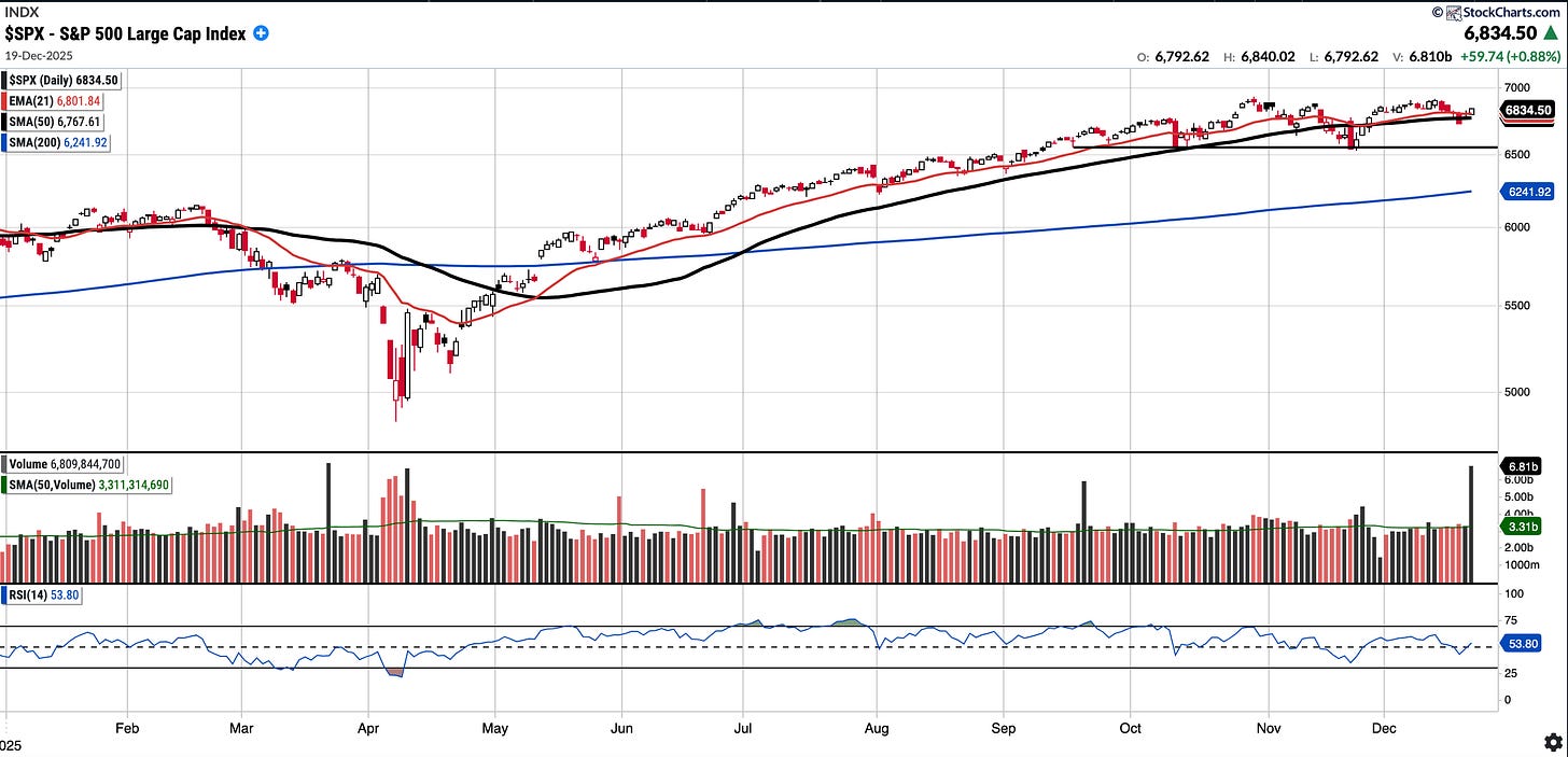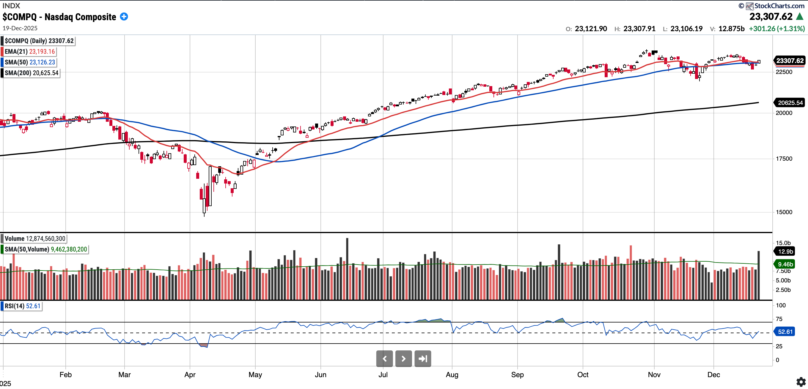 The Nasdaq Composite is above both the EMA 21 and SMA 50 after the rally in the AI complex to end the week.