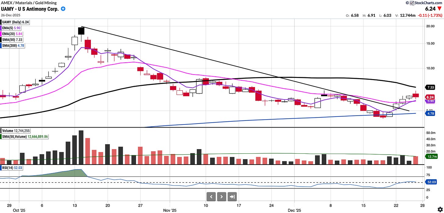 UAMY (US Antimony Corp) is the only fully integrated antimony producer and smelter in North America. They restarted domestic mining this year.