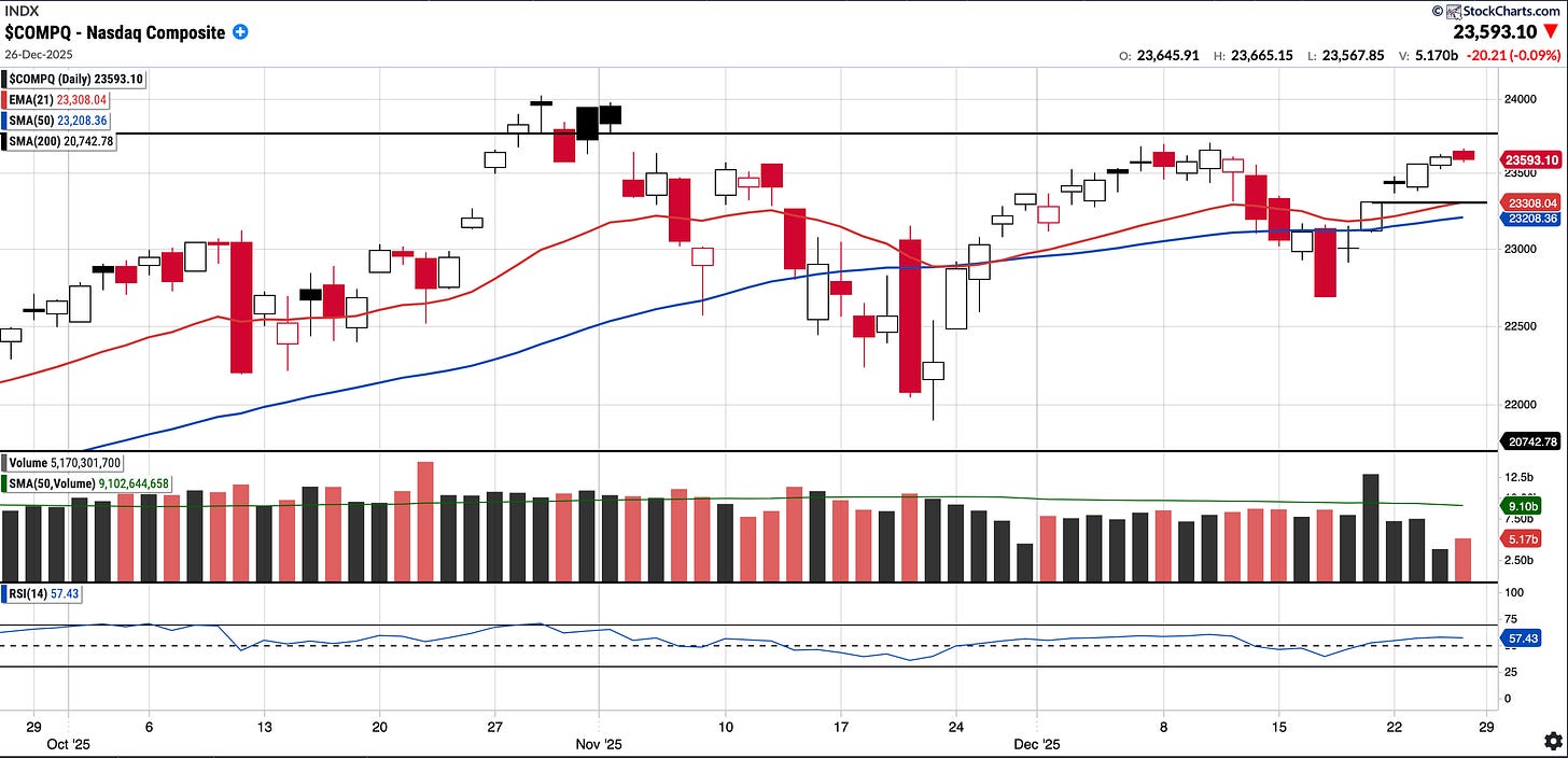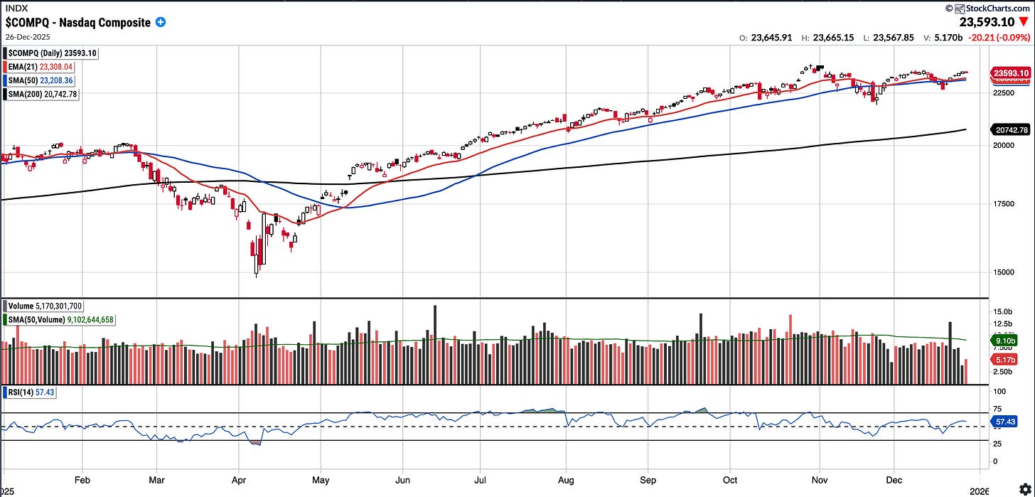 The Nasdaq Composite had a positive week and remains above both the EMA 21 and SMA 50.
