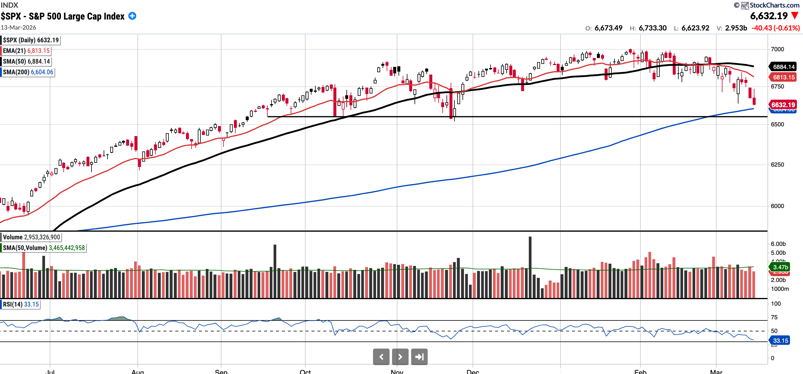 Currently trades at 6,632.19, 3.66% below the 50SMA and 0.43% above the 200SMA.