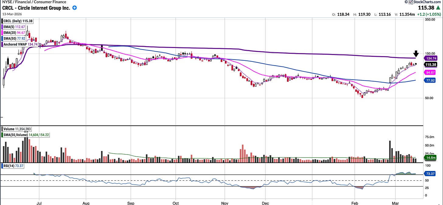 While I like $CRCL, I do also have a position in COIN. A pullback to the mid 90’s would likely present an interesting entry point.