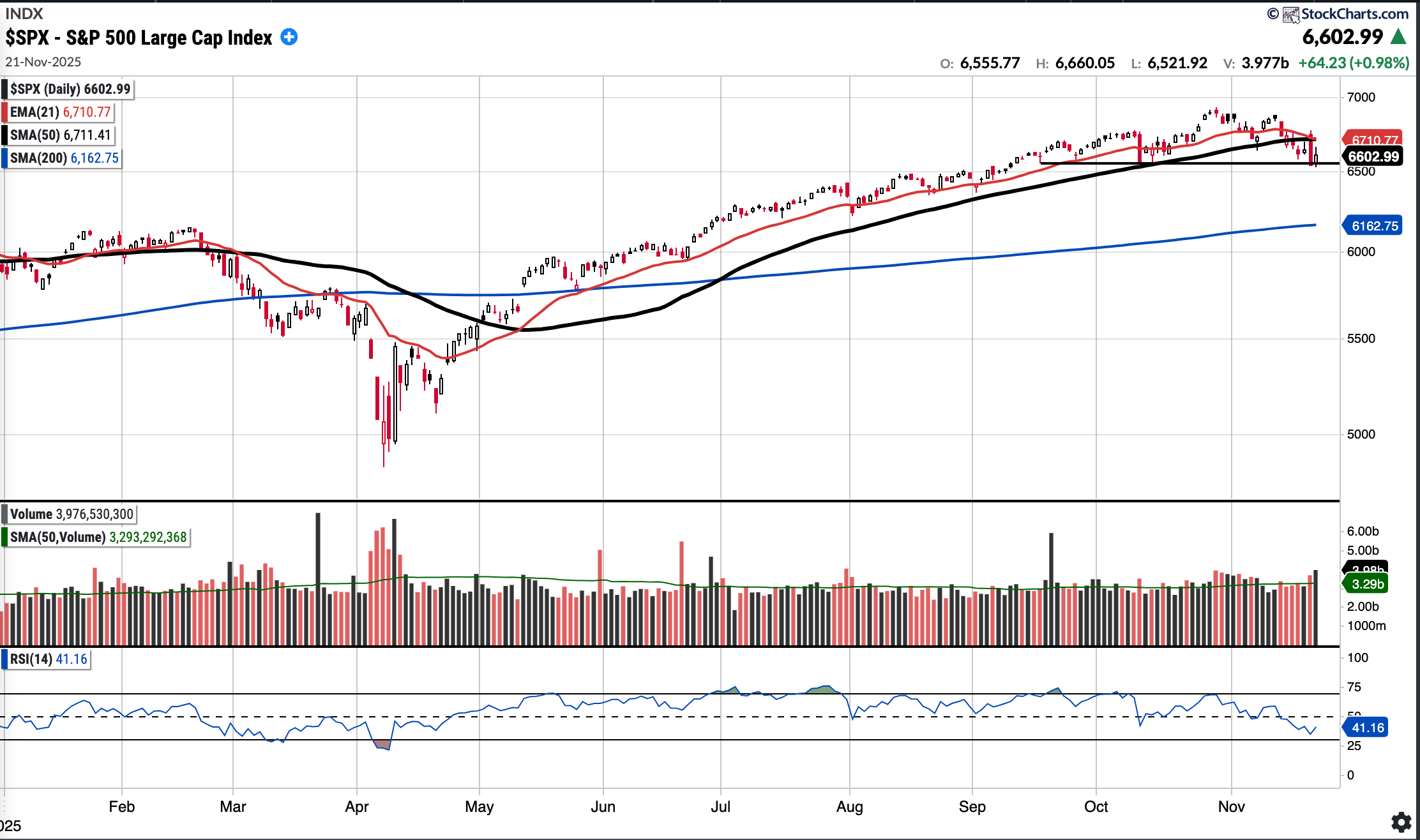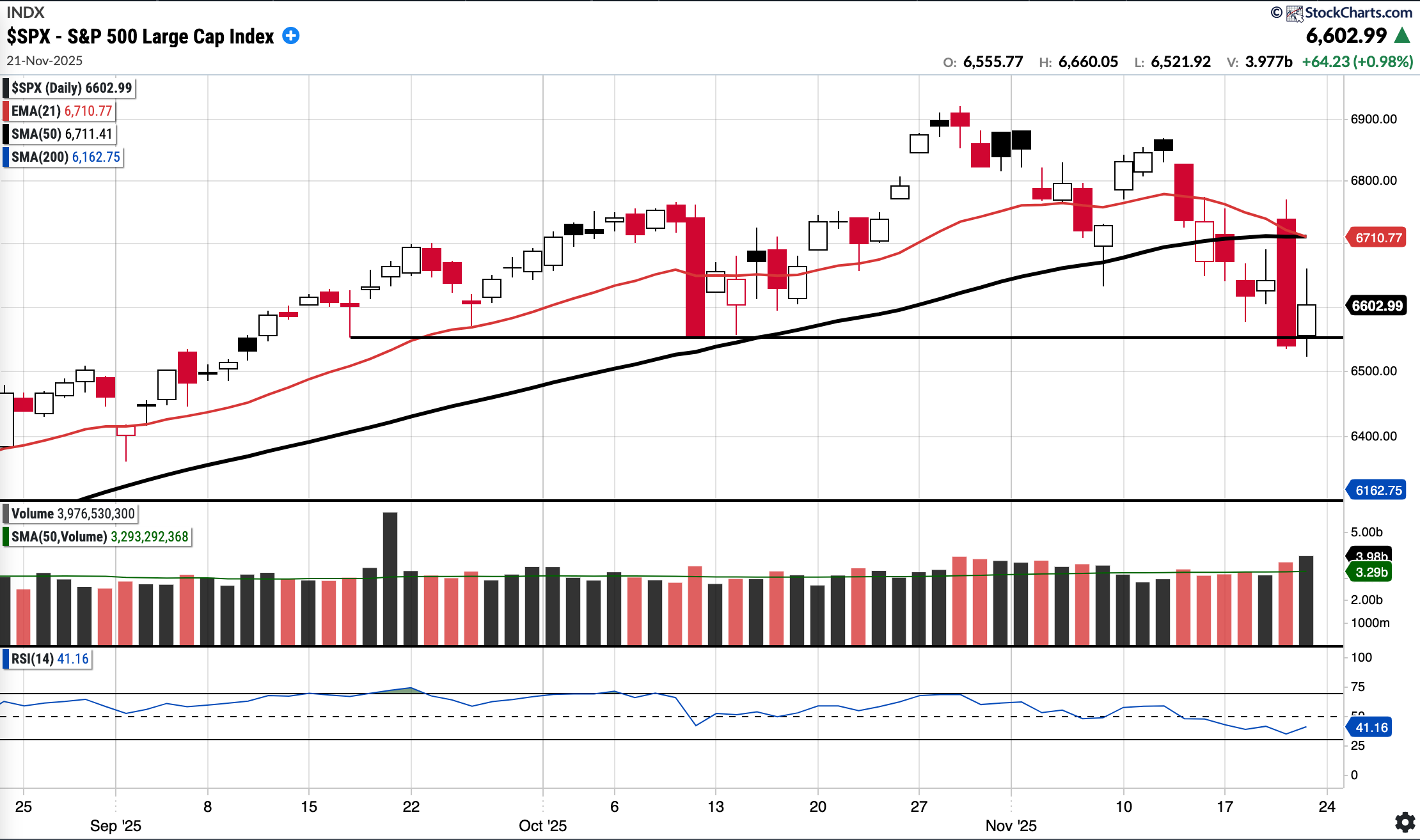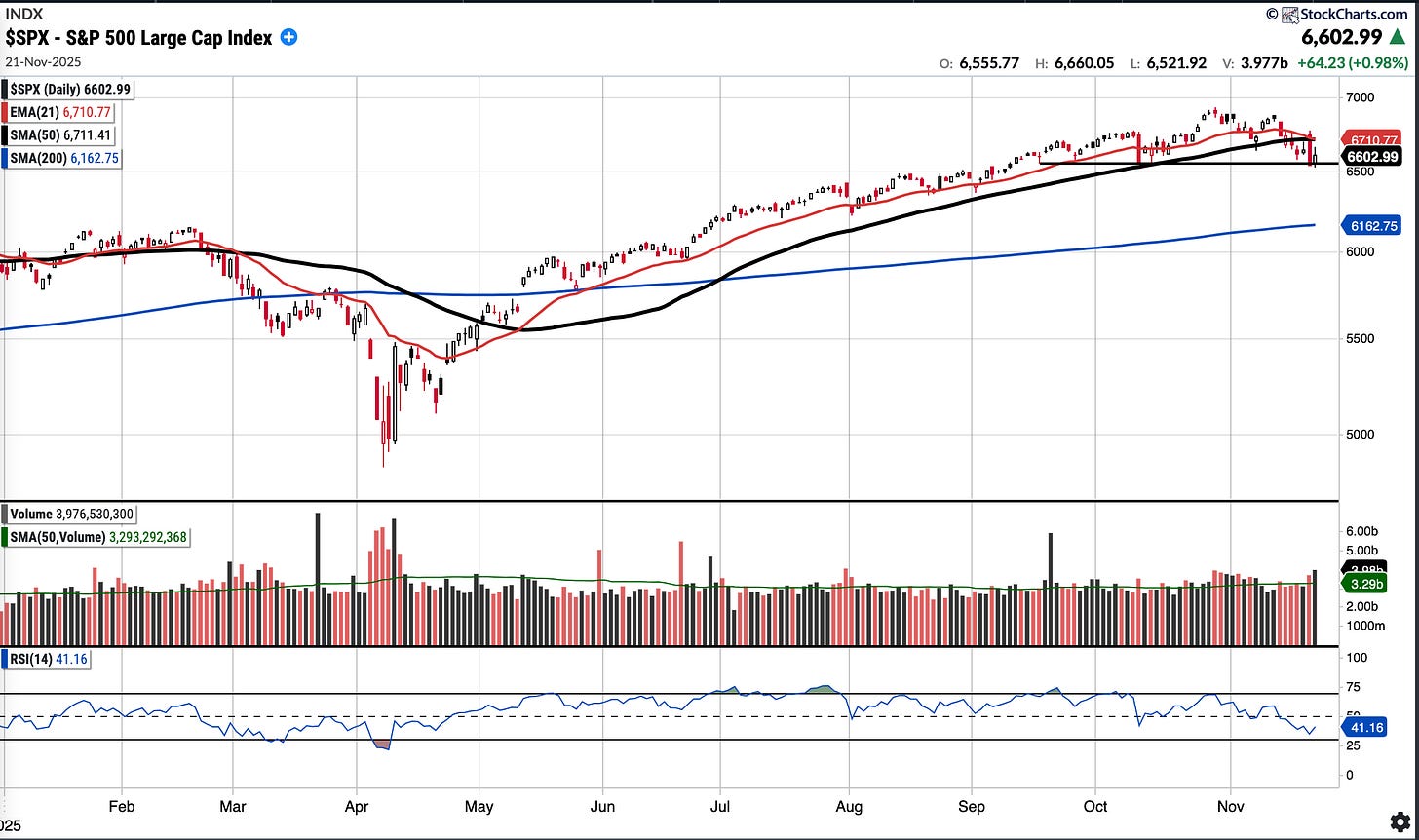 The 6550 level seems like a big level on the SPX now: it was the low of the day on the 17th of September, the closing level on October 10, the low of day October 14 and where the SPX opened up on Friday.