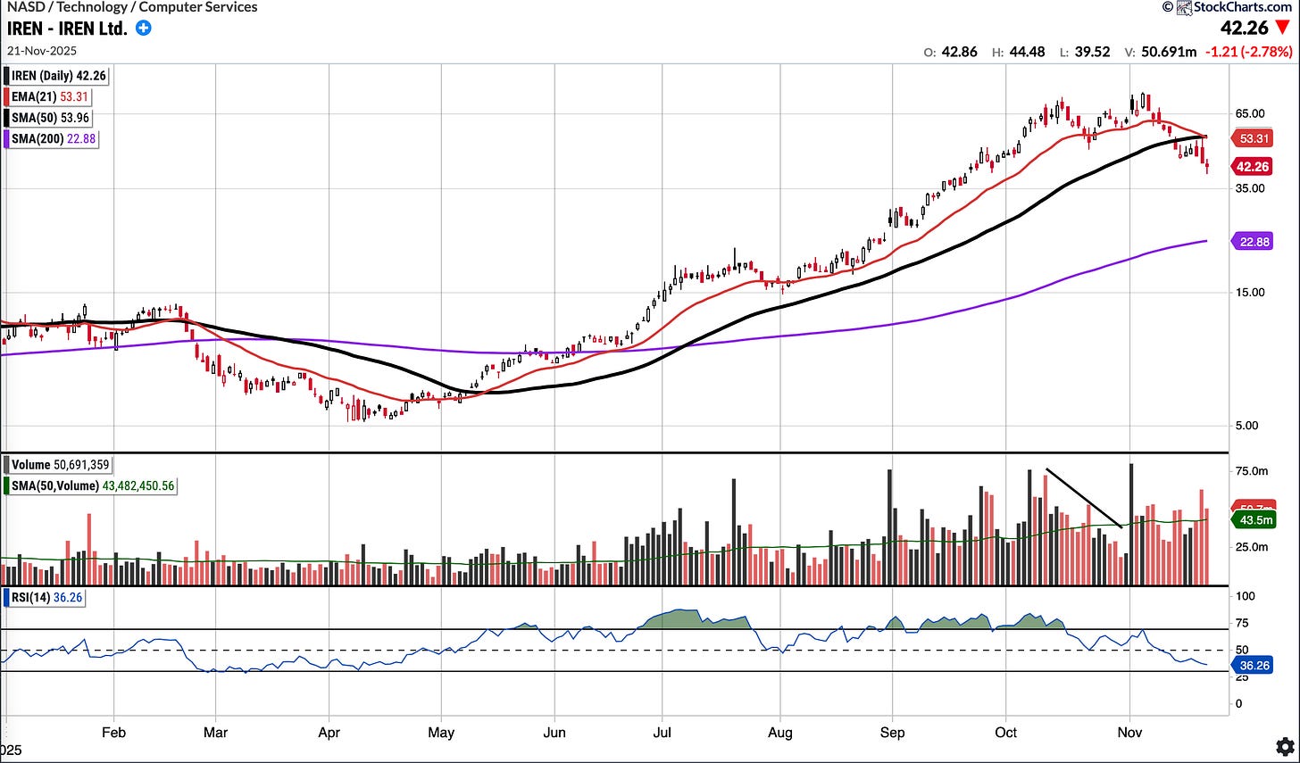 Like last week, IREN was red almost each day and now sits substantially below the SMA 50. Last week, I posted that a mean reversion test of the SMA 50 to the upside was ‘very likely.’ I used the opportunity on Thursday to book some gains and trim my position to a tracker size.