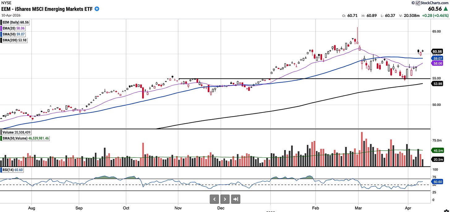 $EEM continues to outperform the U.S. indices comfortably year-to-date, almost 800 bps, and whilst it did pull back sharply over the last few weeks it has rebounded meaningfully