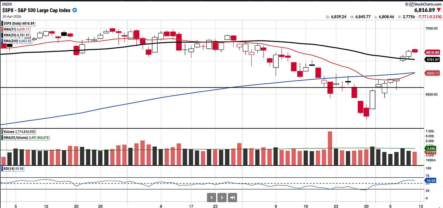 The SPX reclaimed all key moving averages this week. If we do get some retracement this week, there is a large gap at 6620 which may get filled.