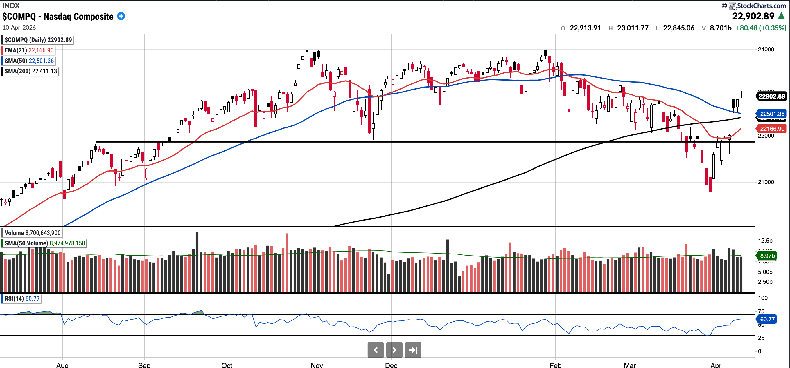 Currently trades at 22,902.90, 1.78% above the 50SMA and 2.19% above the 200SMA.