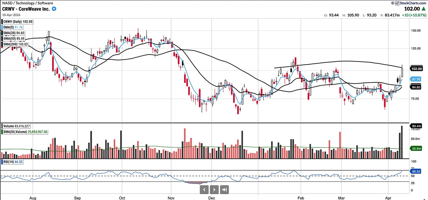 Last week was a strong one for CRWV as they announced a multi-year Anthropic agreement, confirmed a significantly expanded agreement with Meta ($21B over 5 years), received a credit upgrade, and initiated a further $3B debt offering to fund the Meta expansion. Stock was up 25% or so as I feel these were seen as de-risking events.