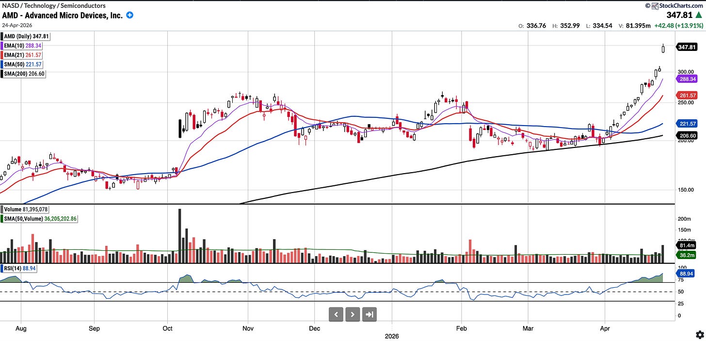 Instead of pulling back or resting, AMD continued to rally, gaining 24% on the week, a truly historic move!