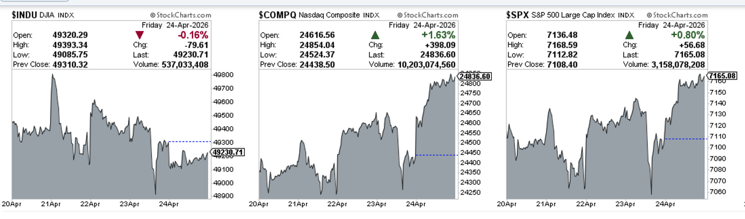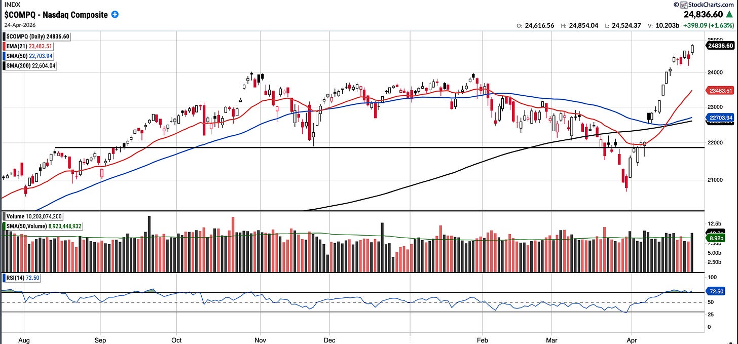 The SPX reached an all-time high close, continuing the remarkable V-shaped recovery from the March 30 lows.