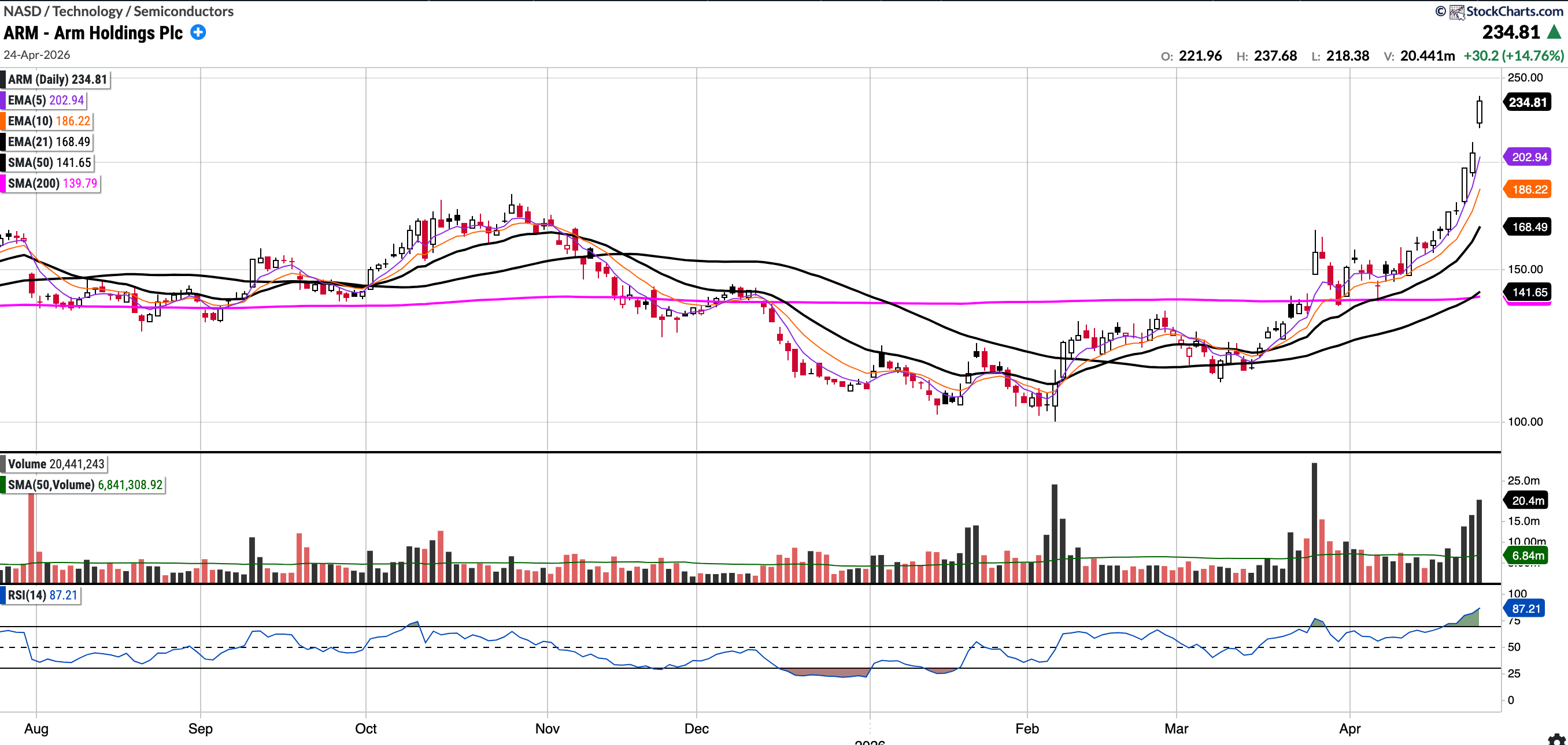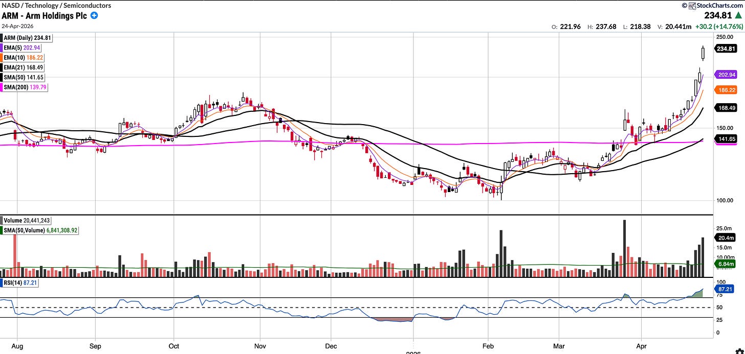 Since I mentioned ARM last week, I have included the updated chart below to complete the circle. Regarding last week’s setup, I noted that it ‘has a very bullish structure, though it is yet to break out to all-time highs’.