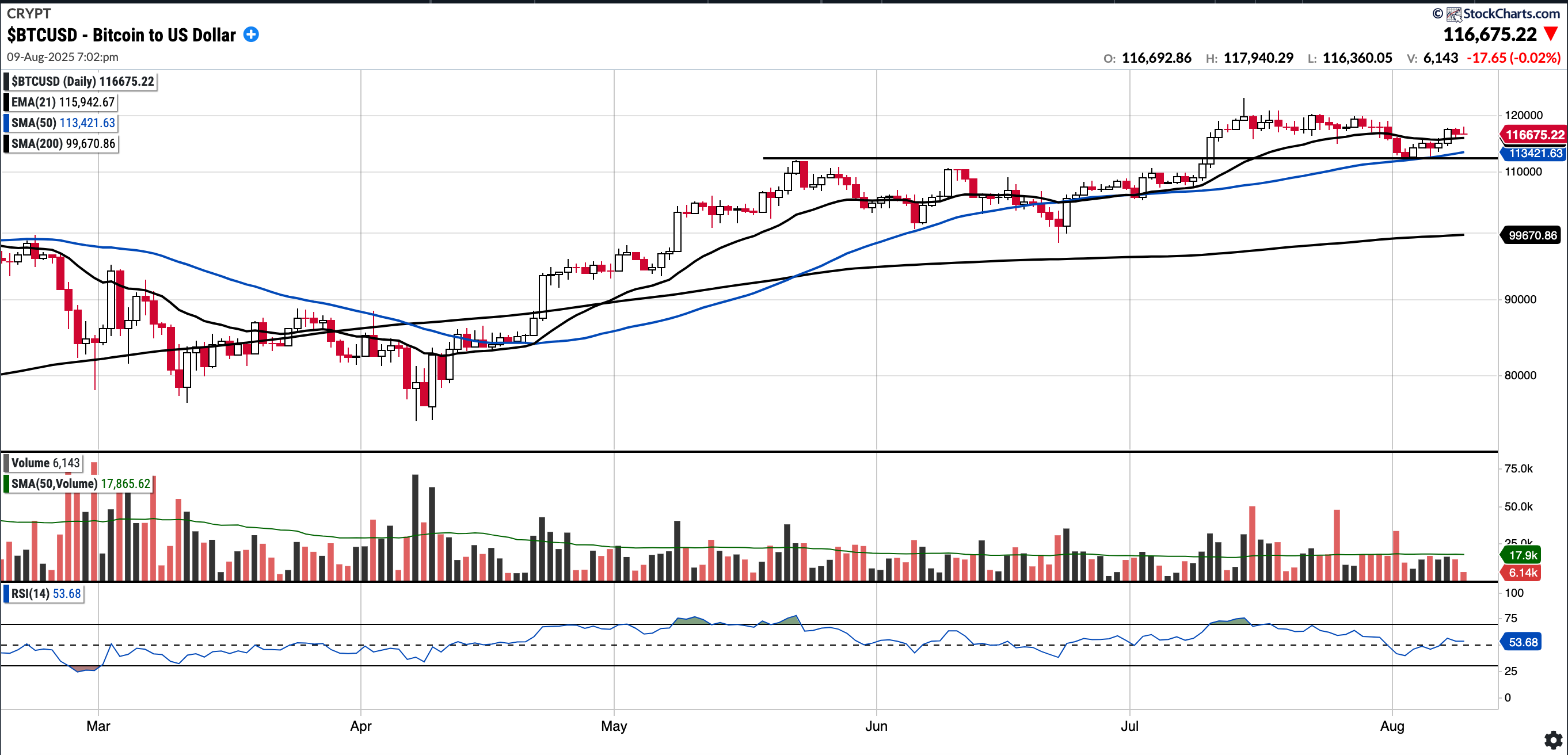 Currently $116675.22. 2.87% above 50SMA and 17.06% above 200SMA.