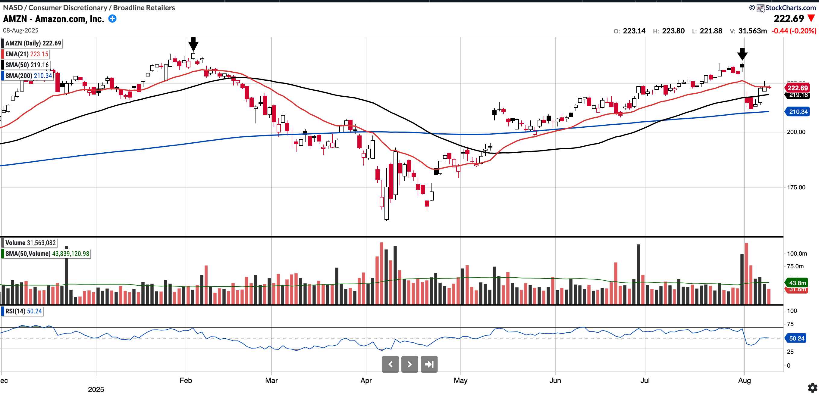Still in a strong uptrend amidst the seasonally weak period. We did get a pullback to the EMA 21 recently which it held and rebounded nicely from. A pullback to the SMA 50 would not be a surprise in coming weeks.