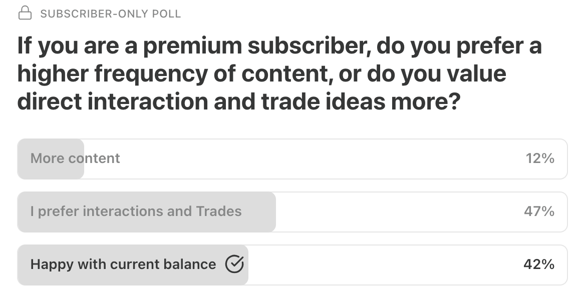 “If you are a premium subscriber, do you prefer a higher frequency of content, or do you value interaction and trade ideas more?” They answered: