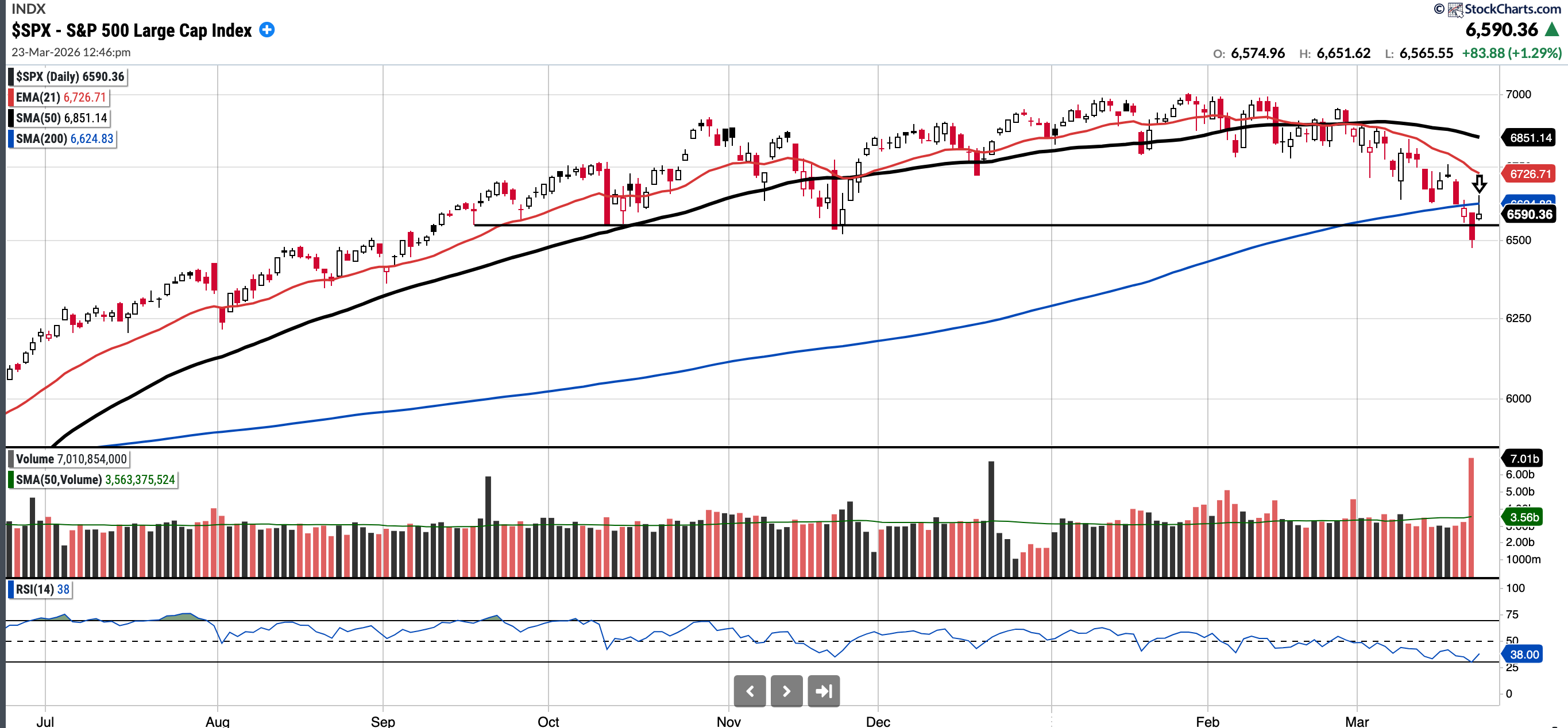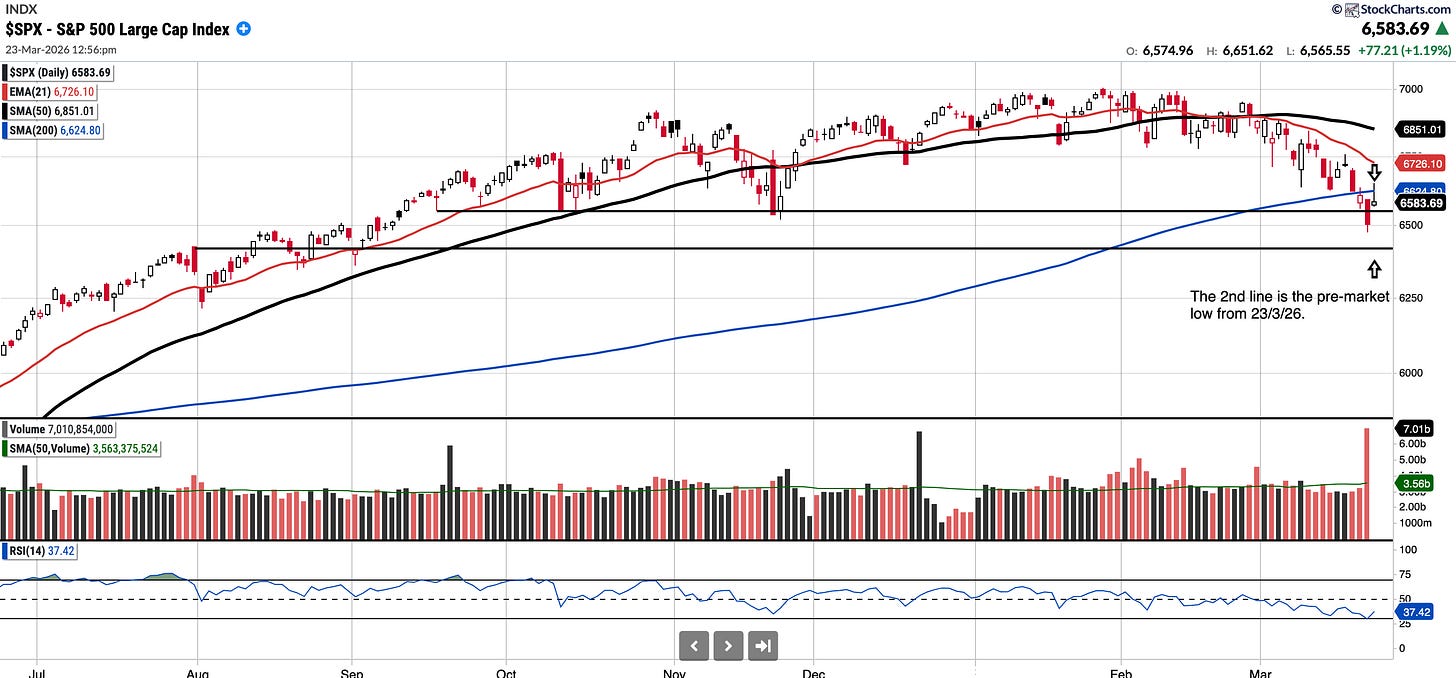 The SMA 200 for the SPX is ~6621. I do not recommend raising exposure until we reclaim, hold and close above the SMA 200.
