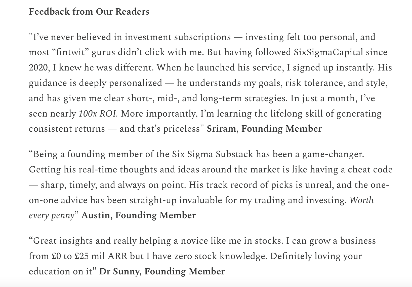 Feedback from the SixSigmaCapital Community, including Founding Members, is accessible via the link below: