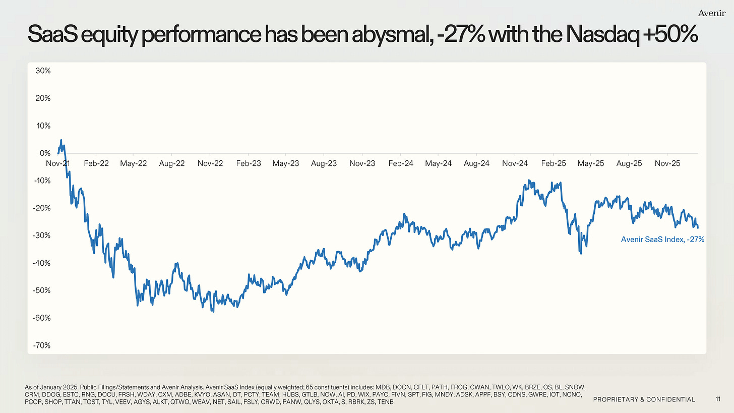 Meanwhile, capital is fleeing SaaS and rotating to atoms. This increases the bleeding.