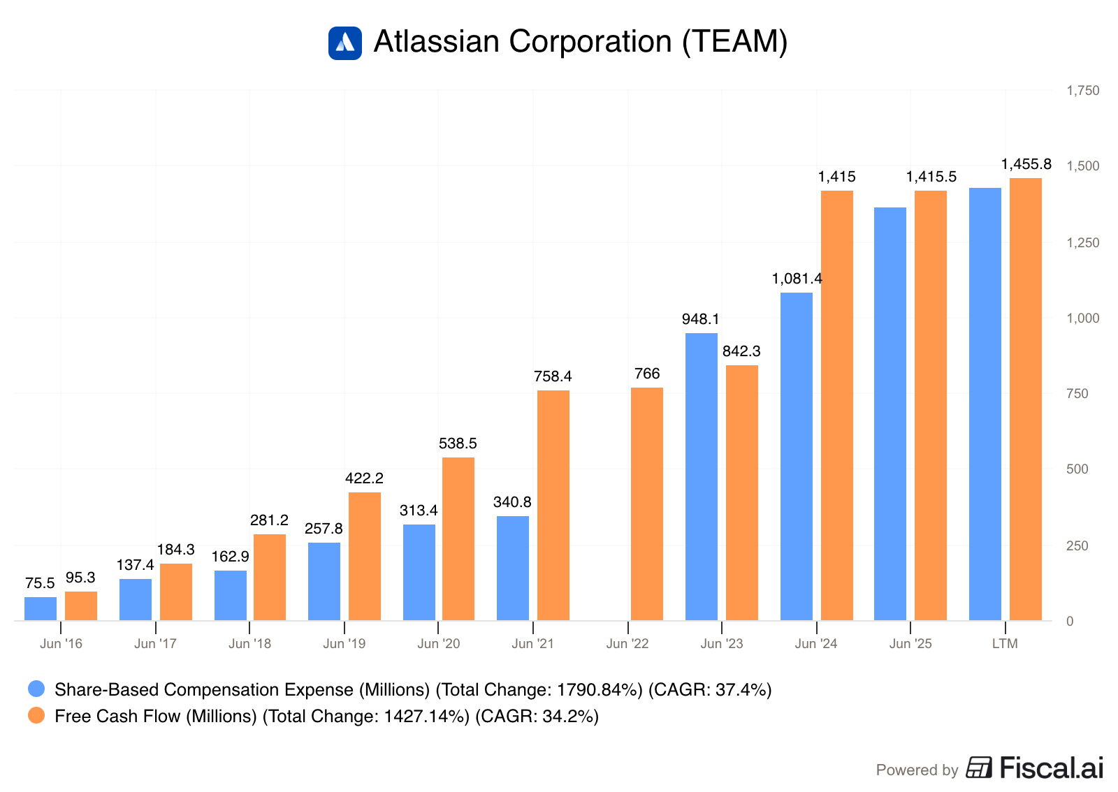 However, the recurring issue with many of these names is the lack of GAAP profitability. Frequently, free cash flow is driven almost entirely by stock-based compensation, as seen with companies like Atlassian (TEAM) and Rubrik (RBRK). This is compounded by management teams that often remain reluctant to reduce their reliance on SBC.