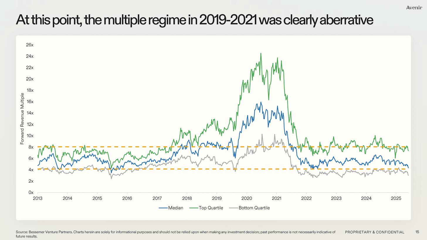 The below Data from Avenir shows a clear divergence: while a broad basket of SaaS equities has declined by 27% since late 2021, the Nasdaq Composite has surged by more than 50% over the same period.