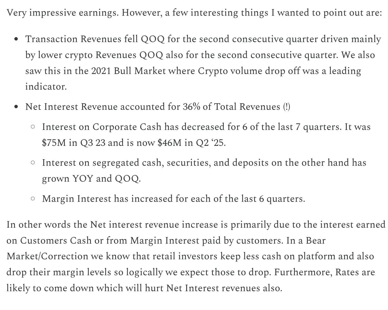 With regards to HOOD, I had given the target of 104 (in the original write up) which we did reach and I have sold around 40% of my shares at 104 and~106. I plan to remain long as yet given their quarters have been strong but I am starting to see some small concerning features as highlighted in the post last night: