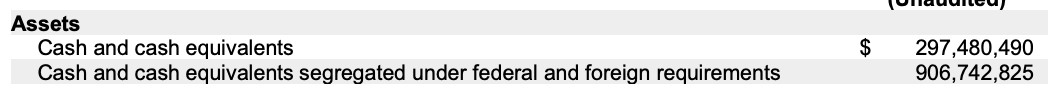 Webull also have ~$1.2B in cash albeit ~906.7M of that is “Cash and cash equivalents segregated under federal and foreign requirements”. I.e. these are funds that legally have to be kept separate from the firm's own operational cash. Of course, they are still earning Net Interest Income on that money.