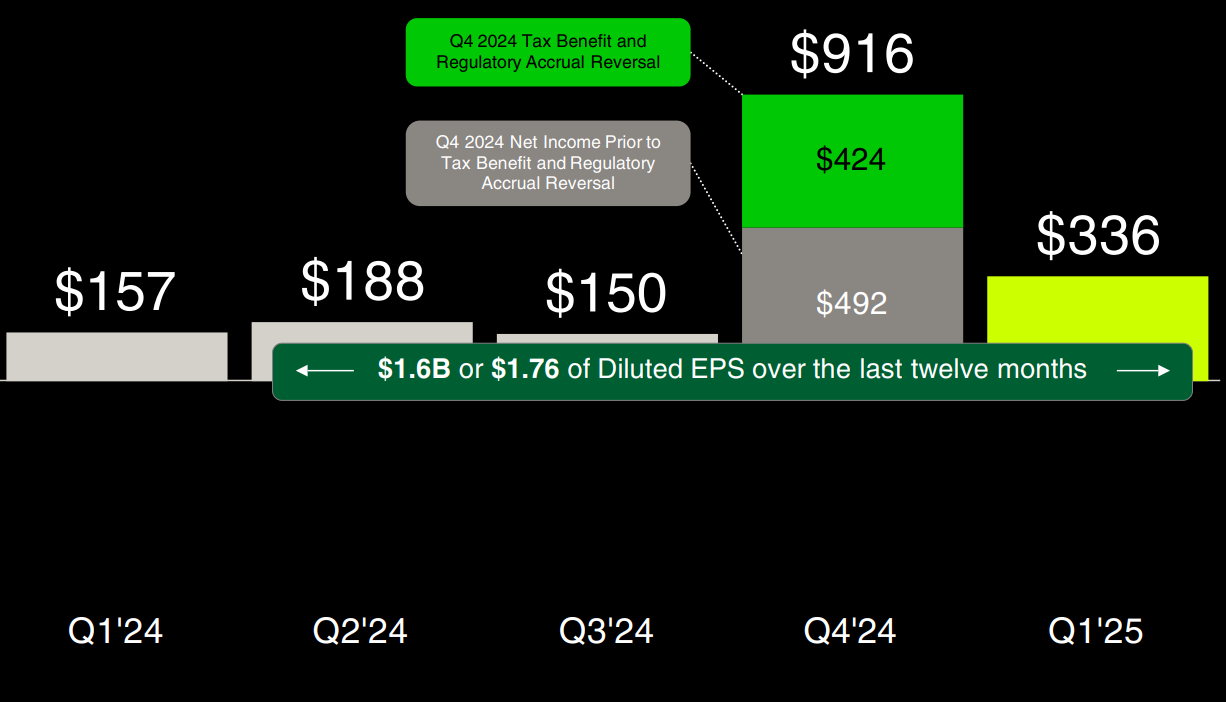 Their most recent quarter was very impressive with Total Net Revenue up 50% YOY, EPS increased >100% YOY from 0.18 to 0.37 and ARPU of $145 up from $104 in Q1 24. Diluted EPS in trailing 12 months is $1.76 but would have been $1.29 excluding the Q4 2024 Tax Benefit and Regulatory Accrual Reversal.